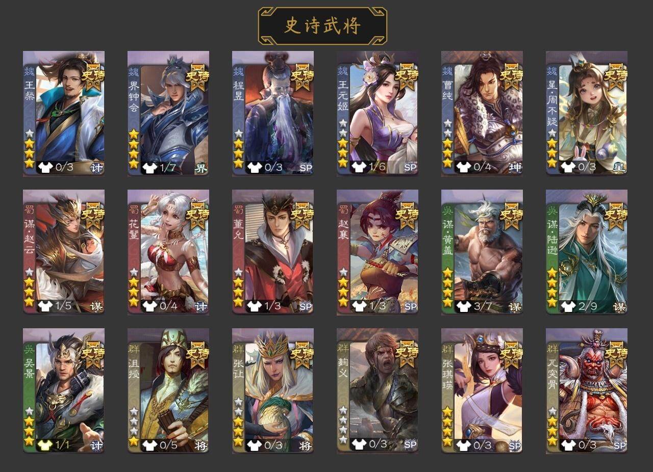 官阶:骠骑将军;VIP等级:VIP9;史诗武将数量:18;动态皮肤数量:15;