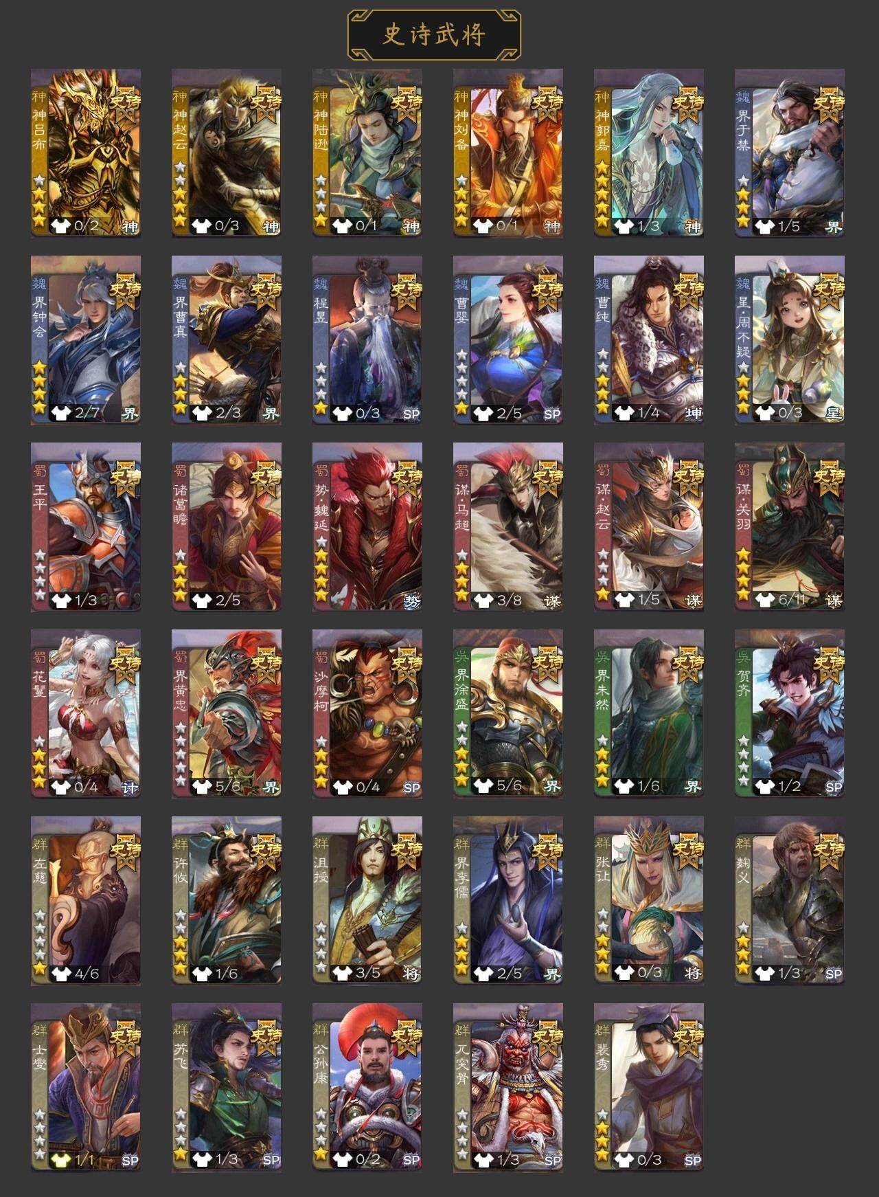 官阶:领军将军;VIP等级:VIP6;史诗武将数量:12;动态皮肤数量:4;武