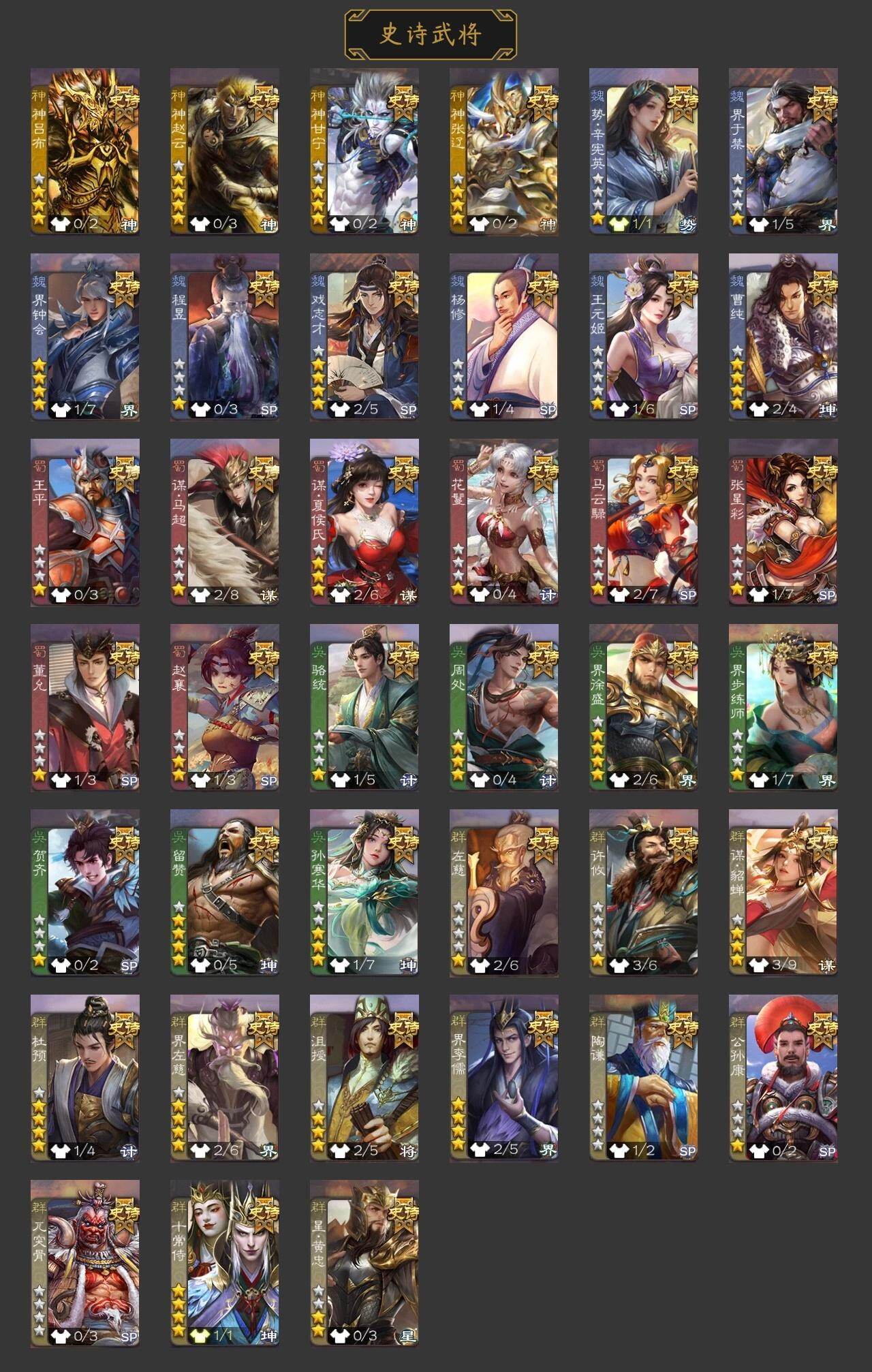 官阶:领军将军;VIP等级:VIP7;史诗武将数量:14;动态皮肤数量:17;