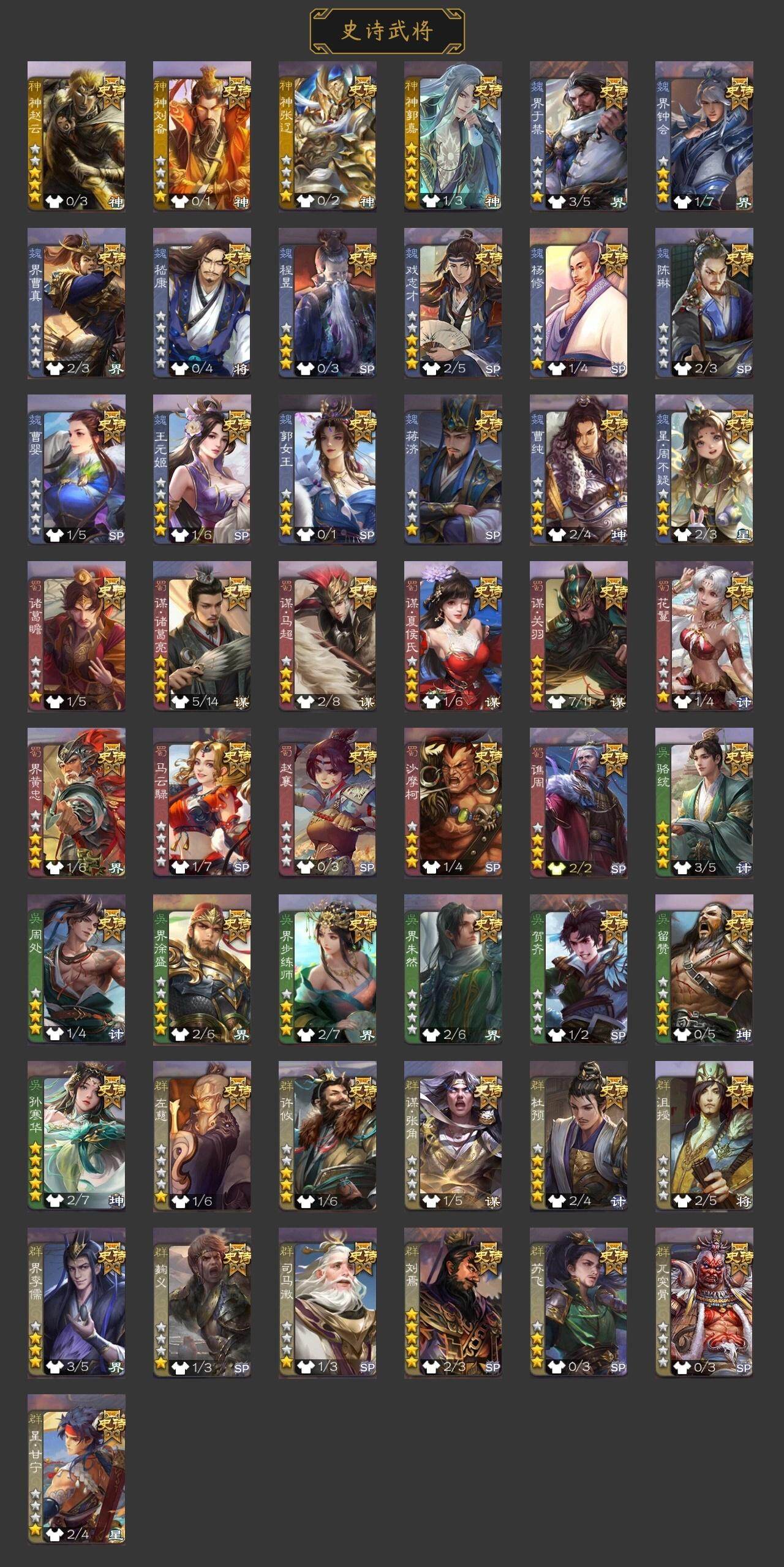 官阶:大将军;VIP等级:VIP10;史诗武将数量:49;动态皮肤数量:41;