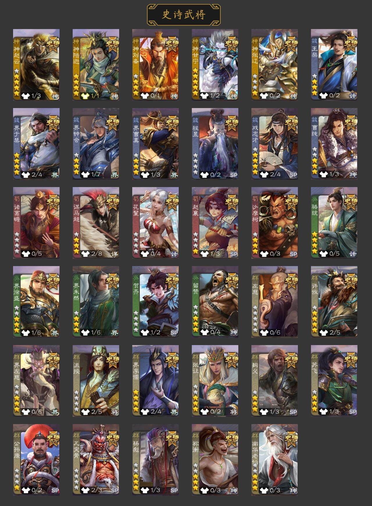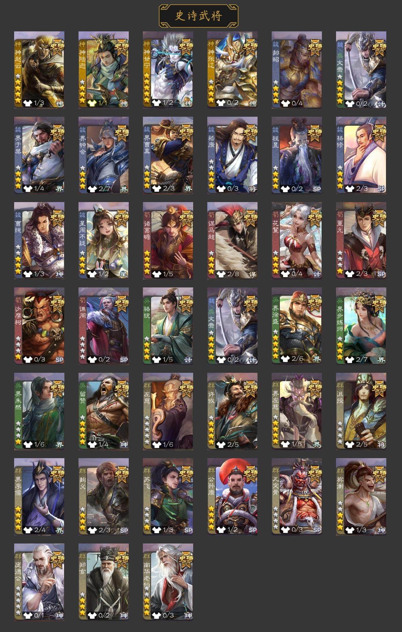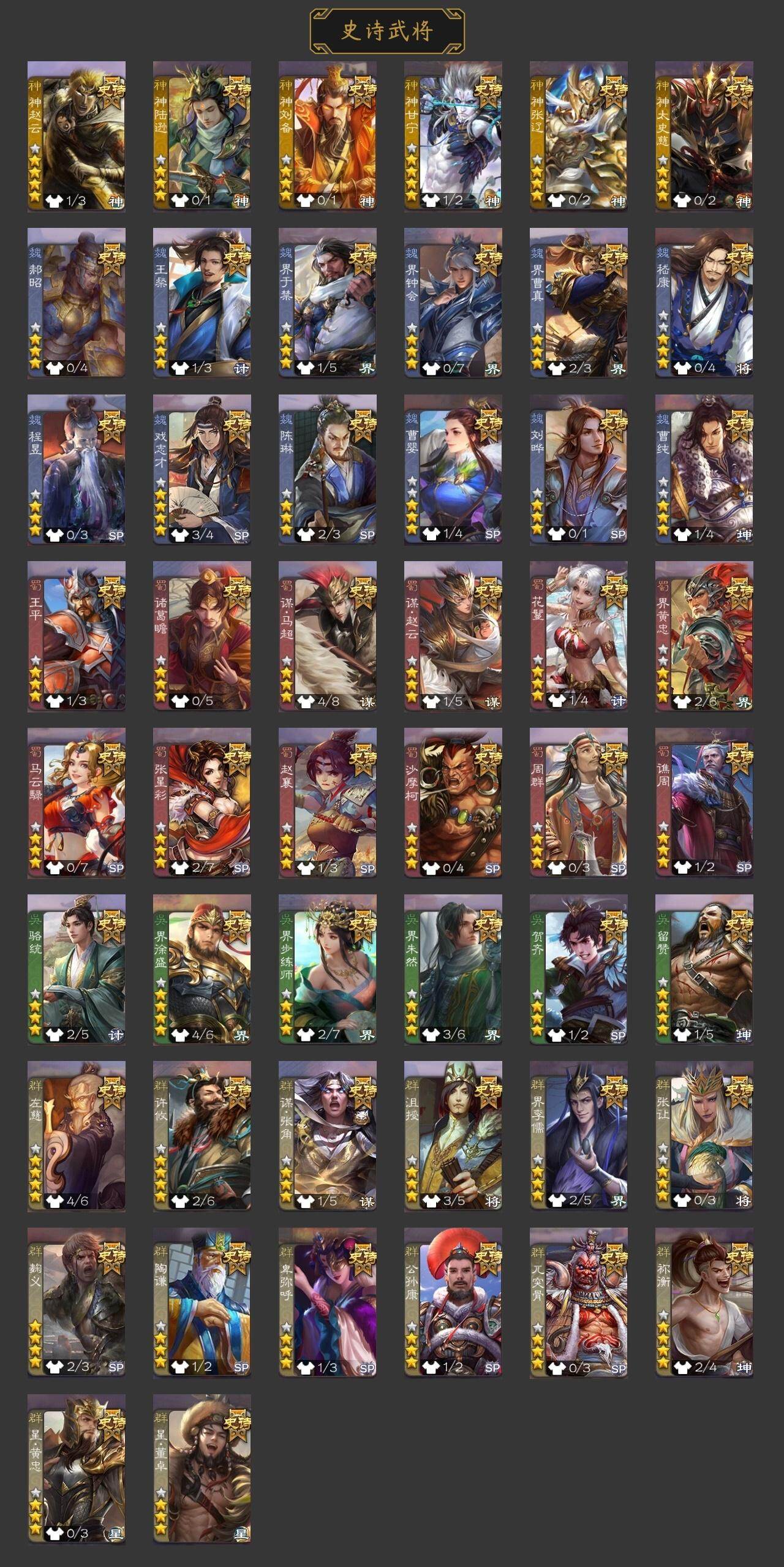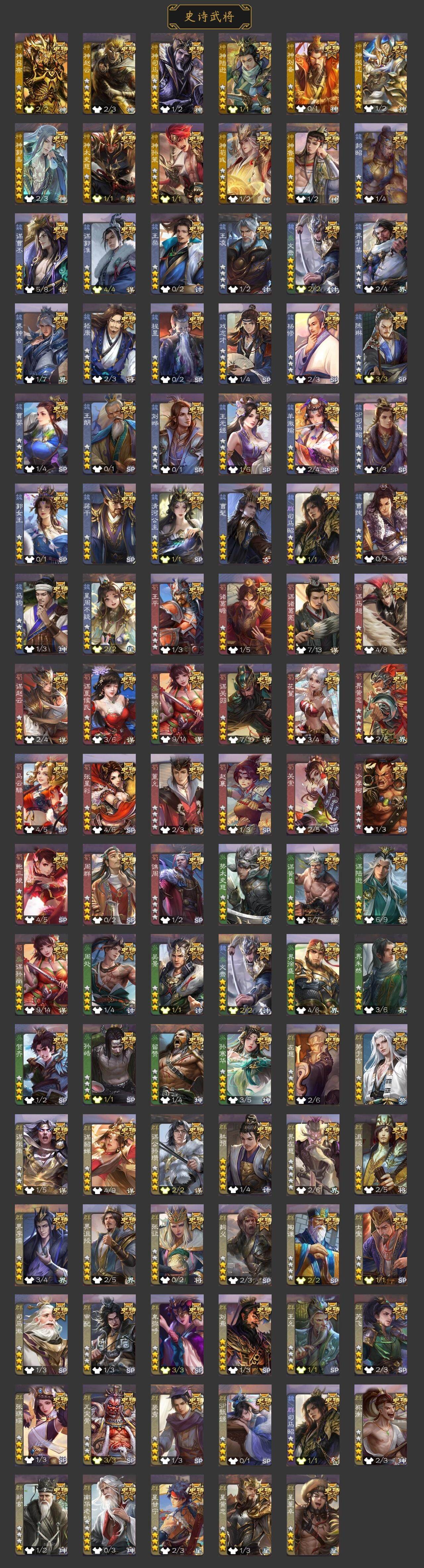 官阶:骠骑将军;VIP等级:VIP10;史诗武将数量:35;动态皮肤数量:33
