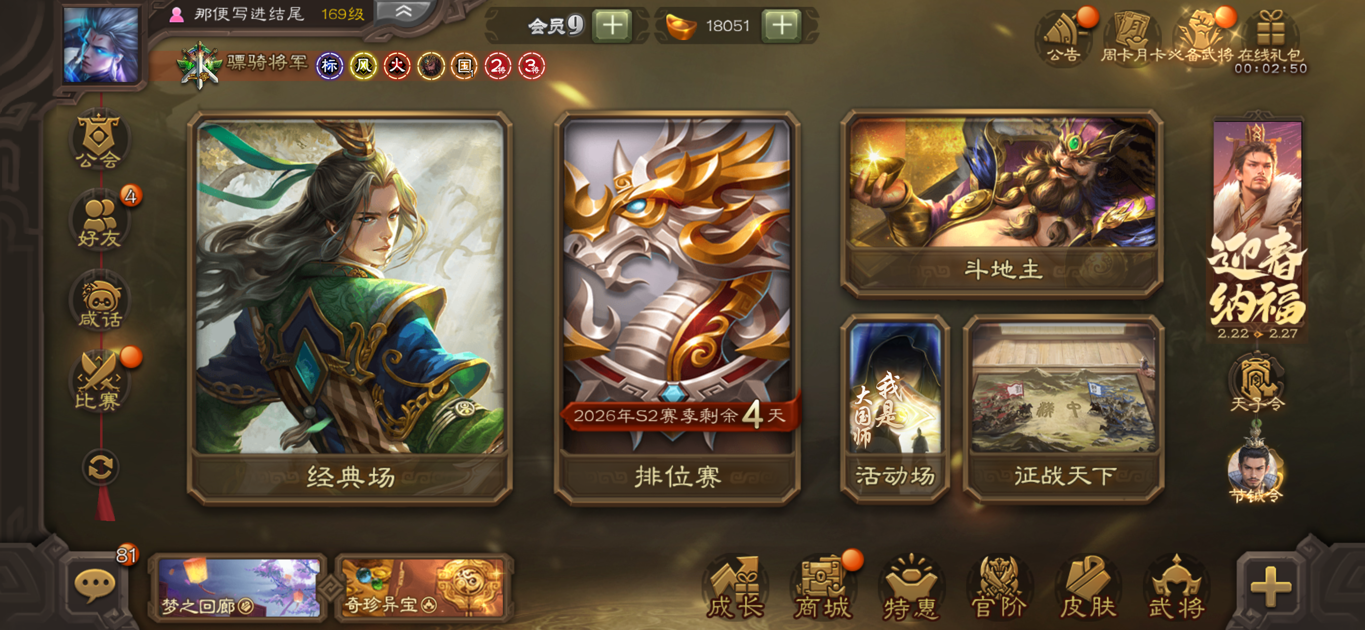 【1481】官阶:大将军;VIP等级:VIP11;史诗武将数量:62;动态皮肤