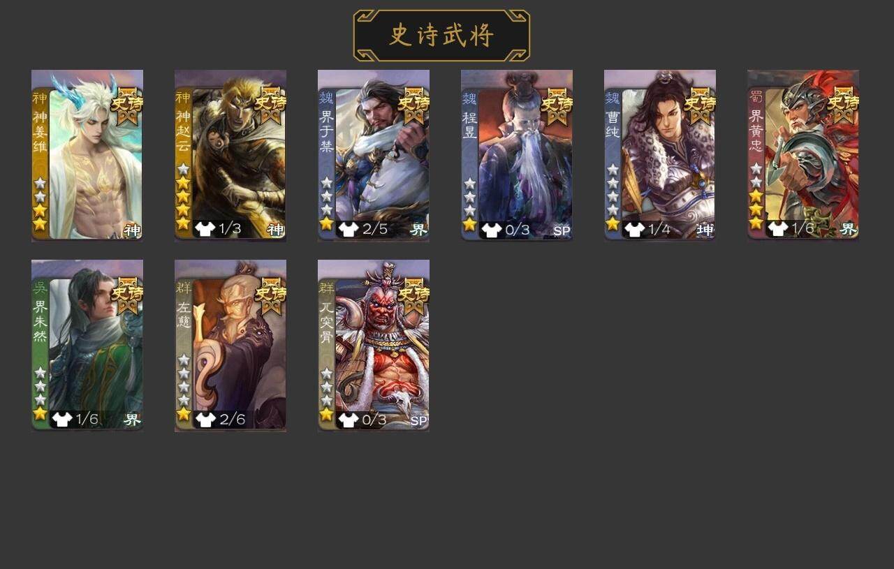 官阶:中军将军;VIP等级:VIP7;史诗武将数量:11;动态皮肤数量:4;武