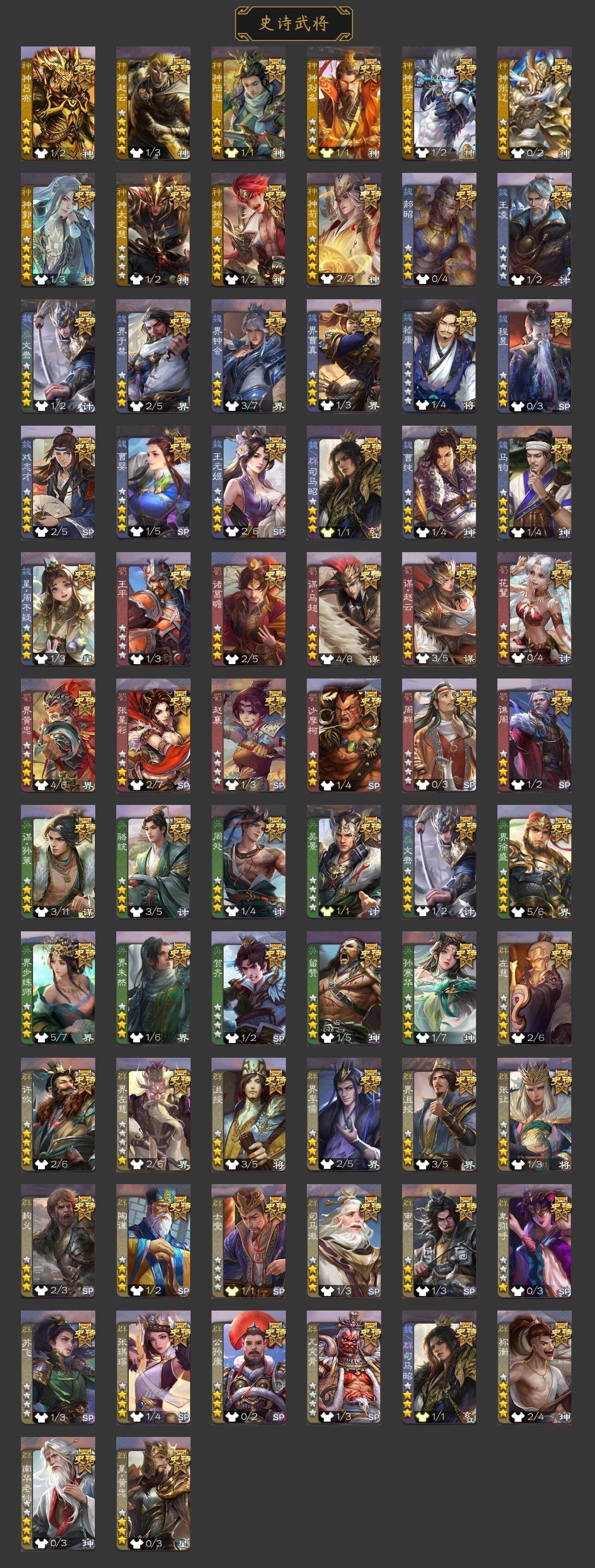 官阶:大将军;VIP等级:VIP11;史诗武将数量:37;动态皮肤数量:36;