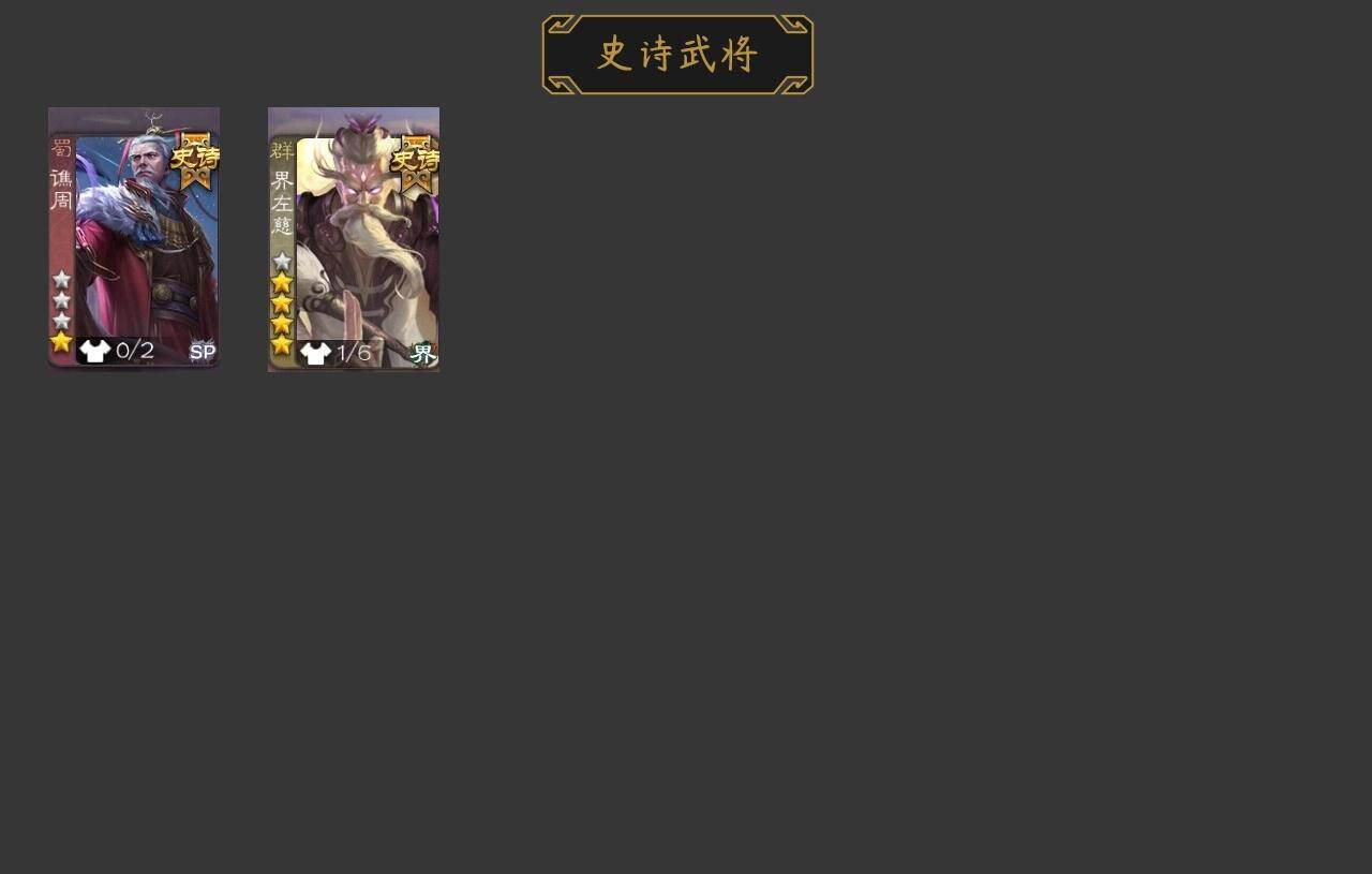 官阶:先锋将军;VIP等级:VIP1;史诗武将数量:4;动态皮肤数量:2;武将