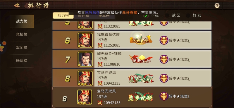 三国战纪【安卓OPPO】号遇有缘人 快900万战 卡级号