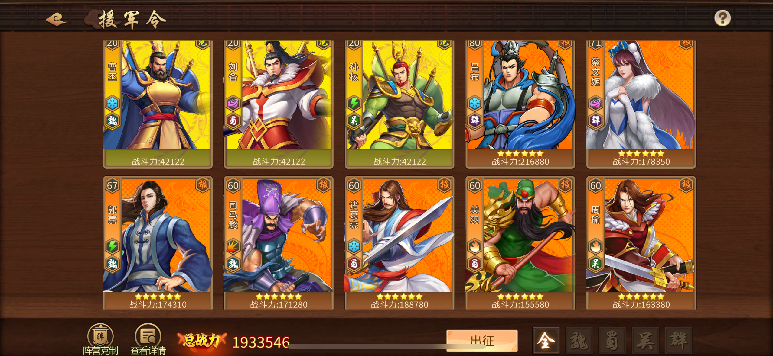 王炸1战区 榜2 1350万 8星关羽 攻击力74万