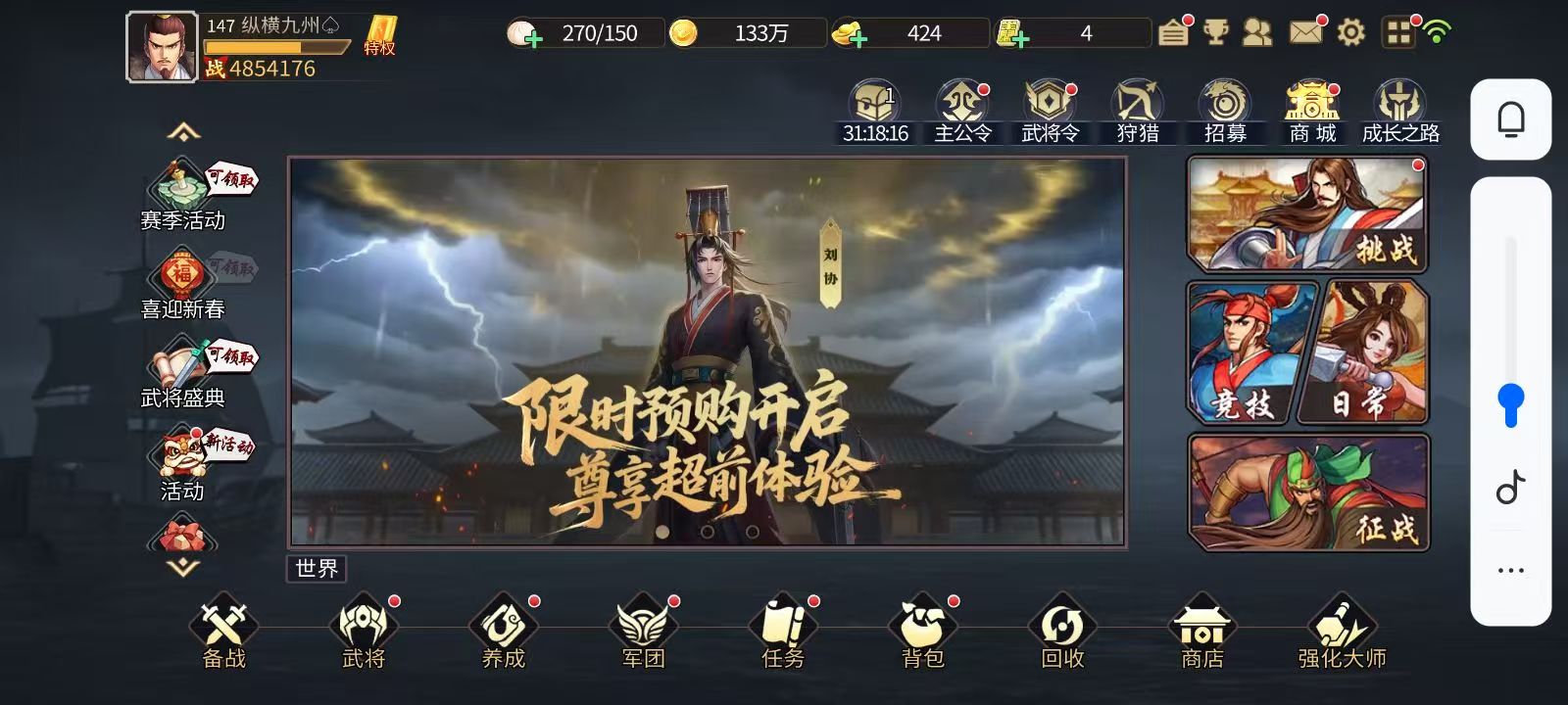 126级862万战力、4000块刚充的8星年将刘协