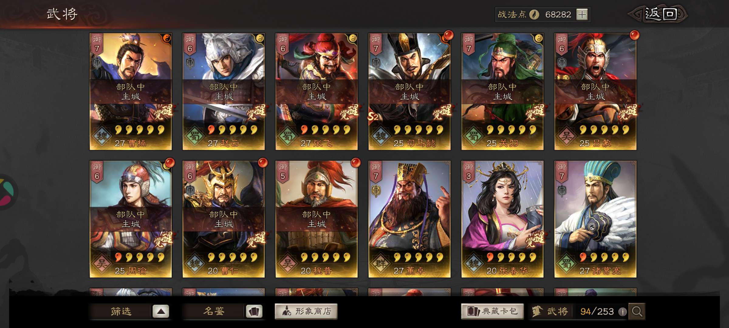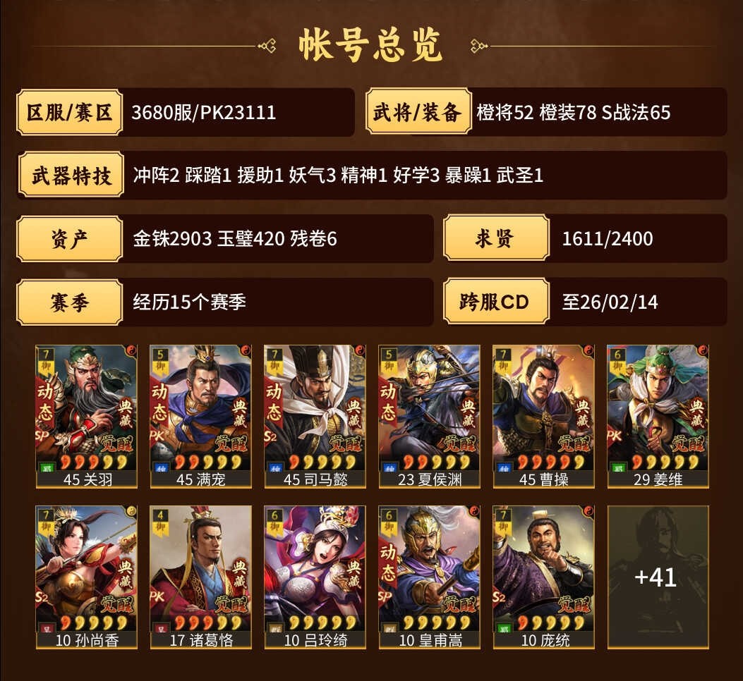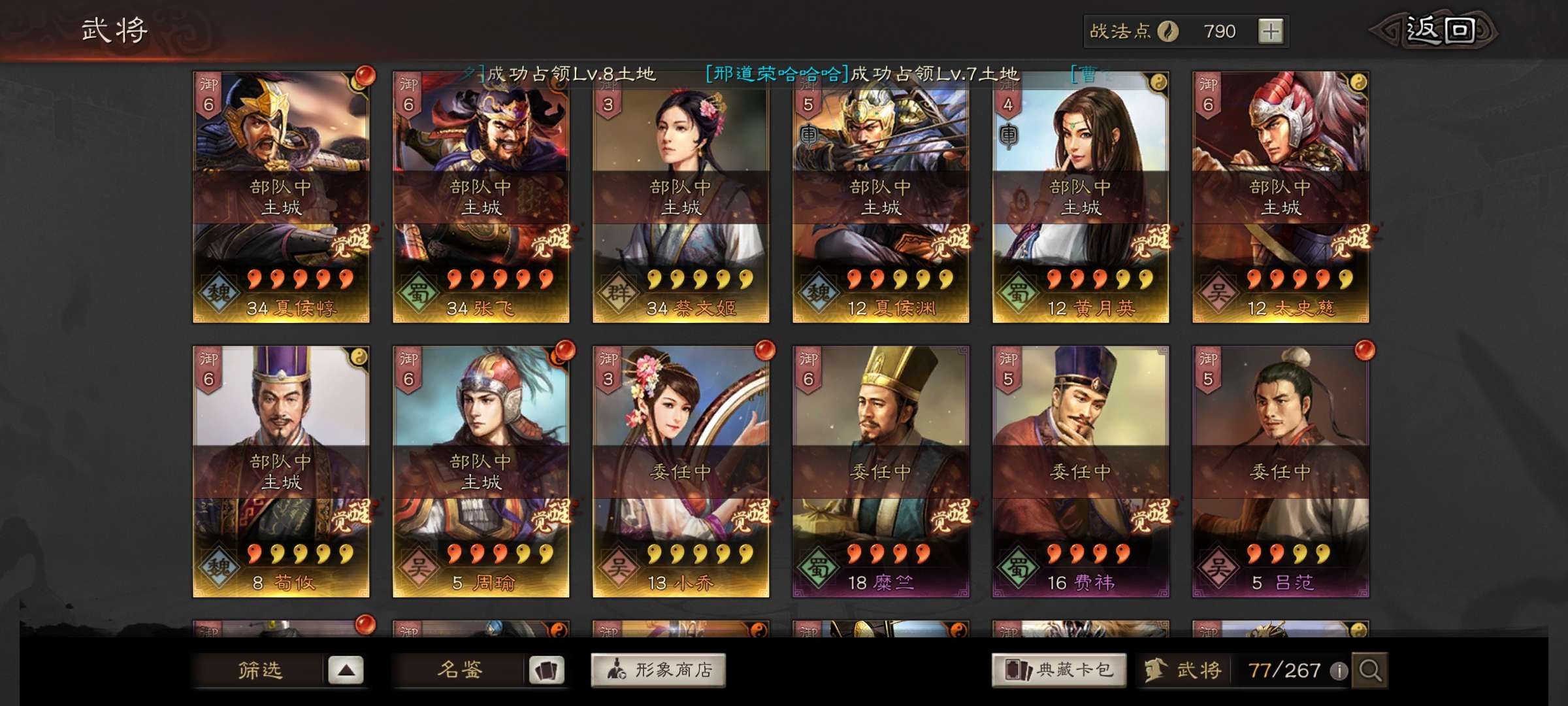 满红麒麟太尉北伐吴骑关关等等,限定基本满,特技好奸雄神威号令雄列神算等等,带4.8万金珠