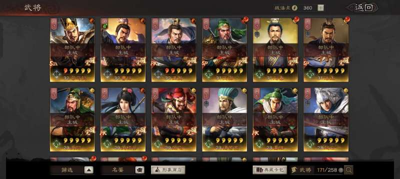 三国志:战略版【安卓官方】战法齐全,卡不错次新PK赛季,满商业,求贤差不多满,霸业盟