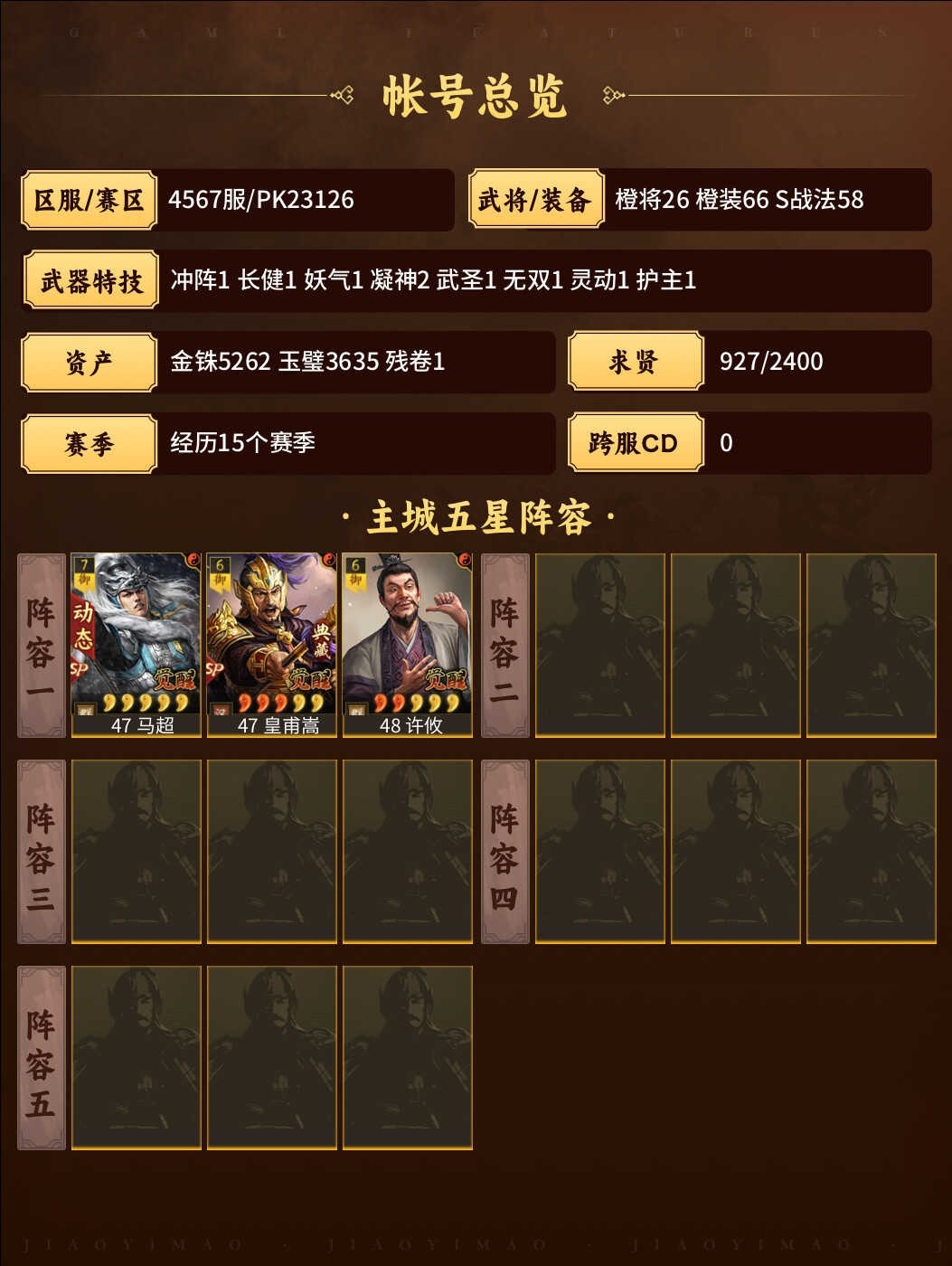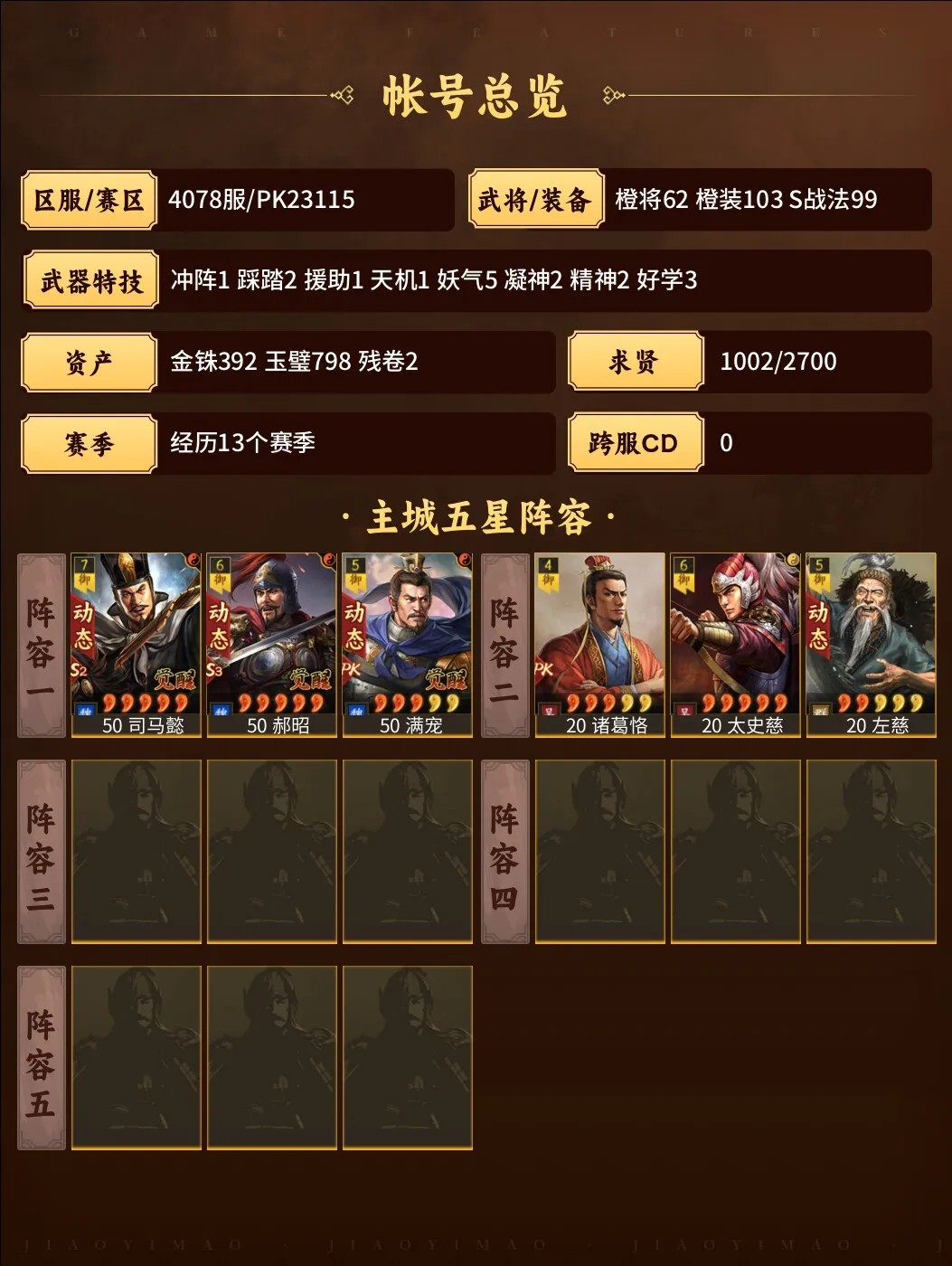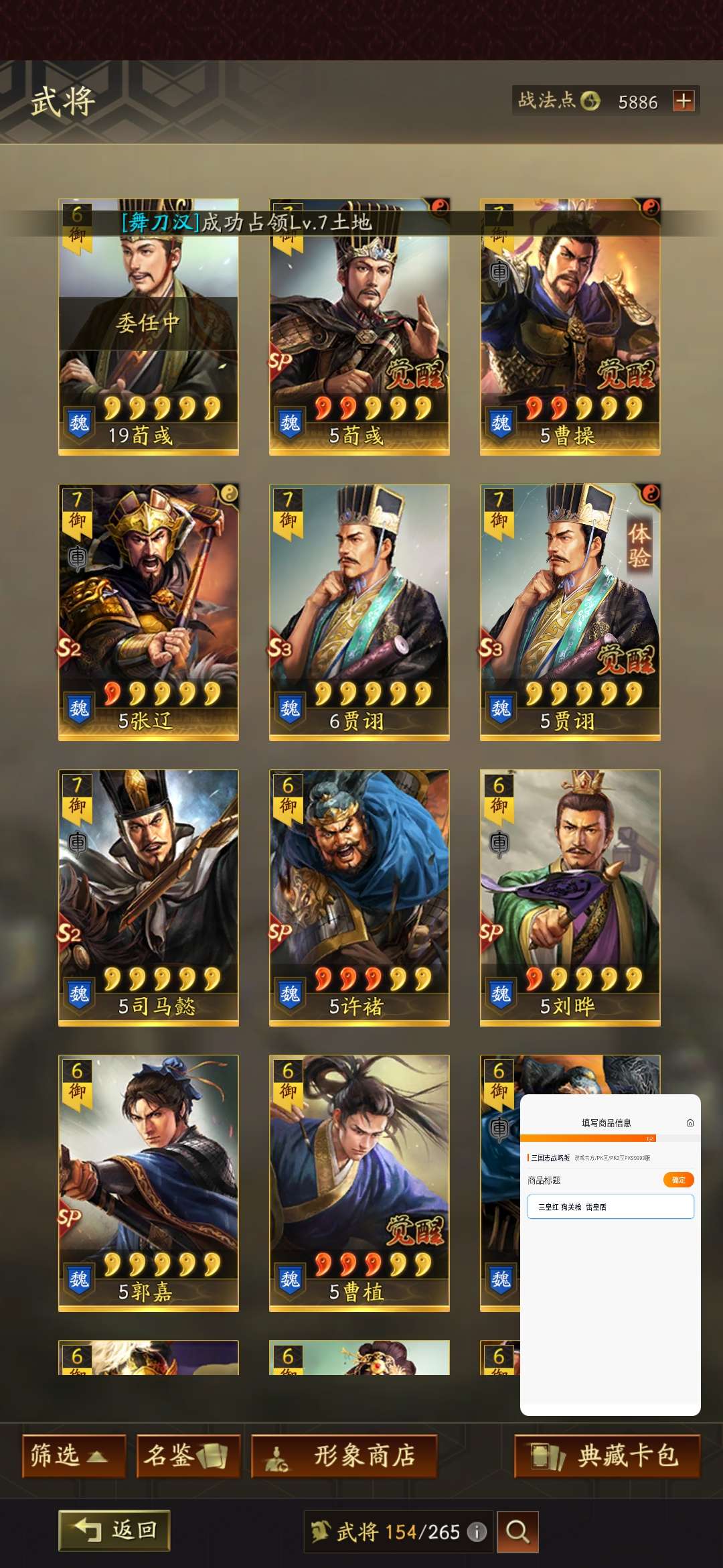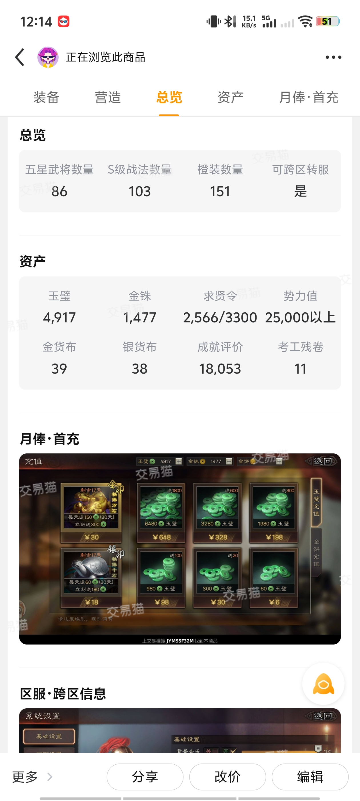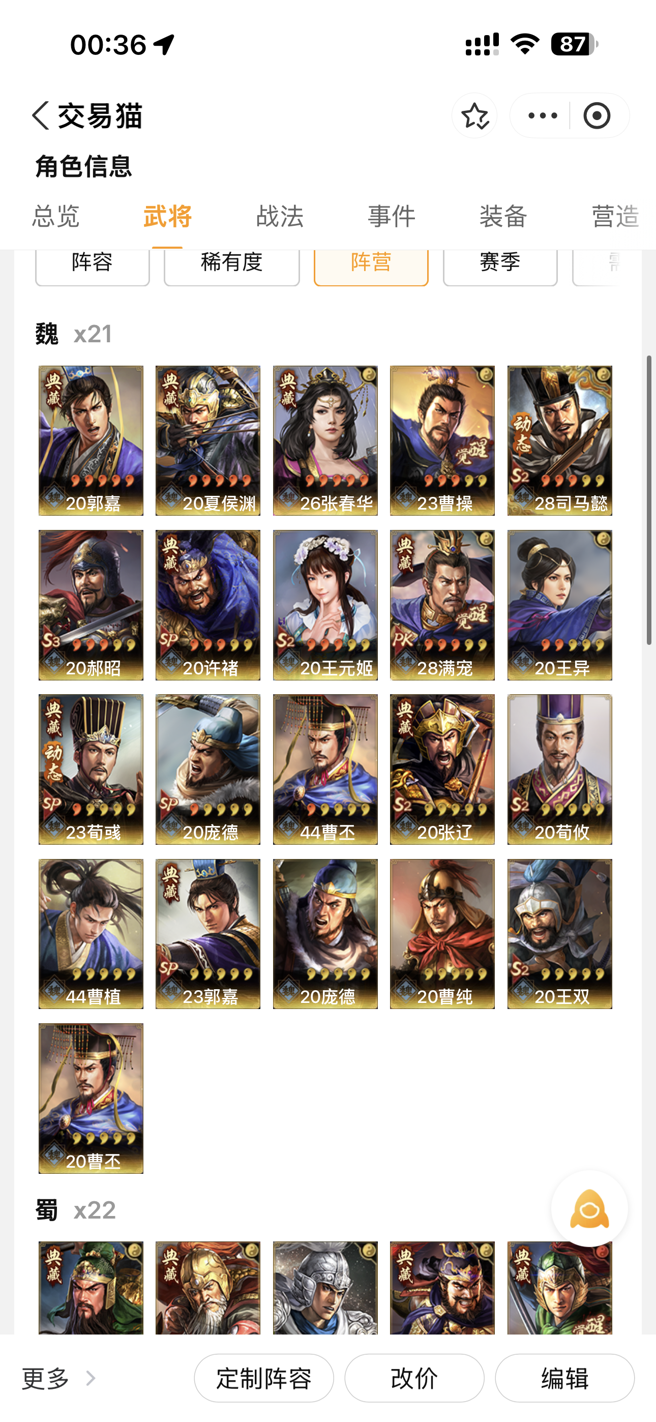 官方账号 多武将 可议价 排名靠前 便宜出
