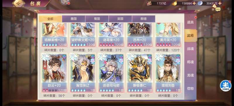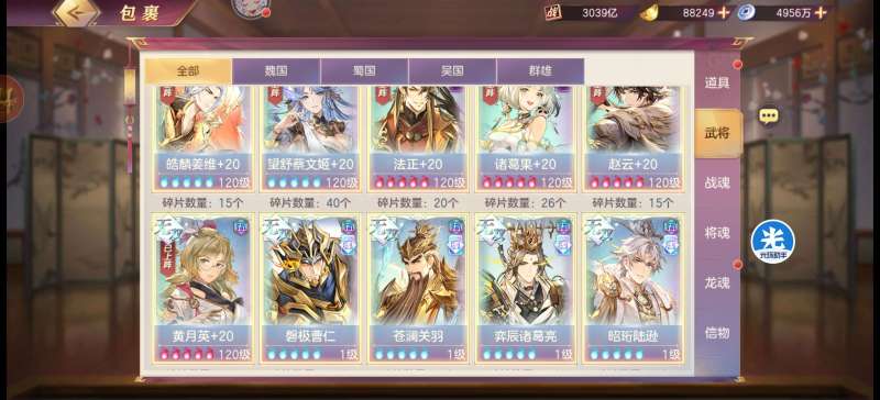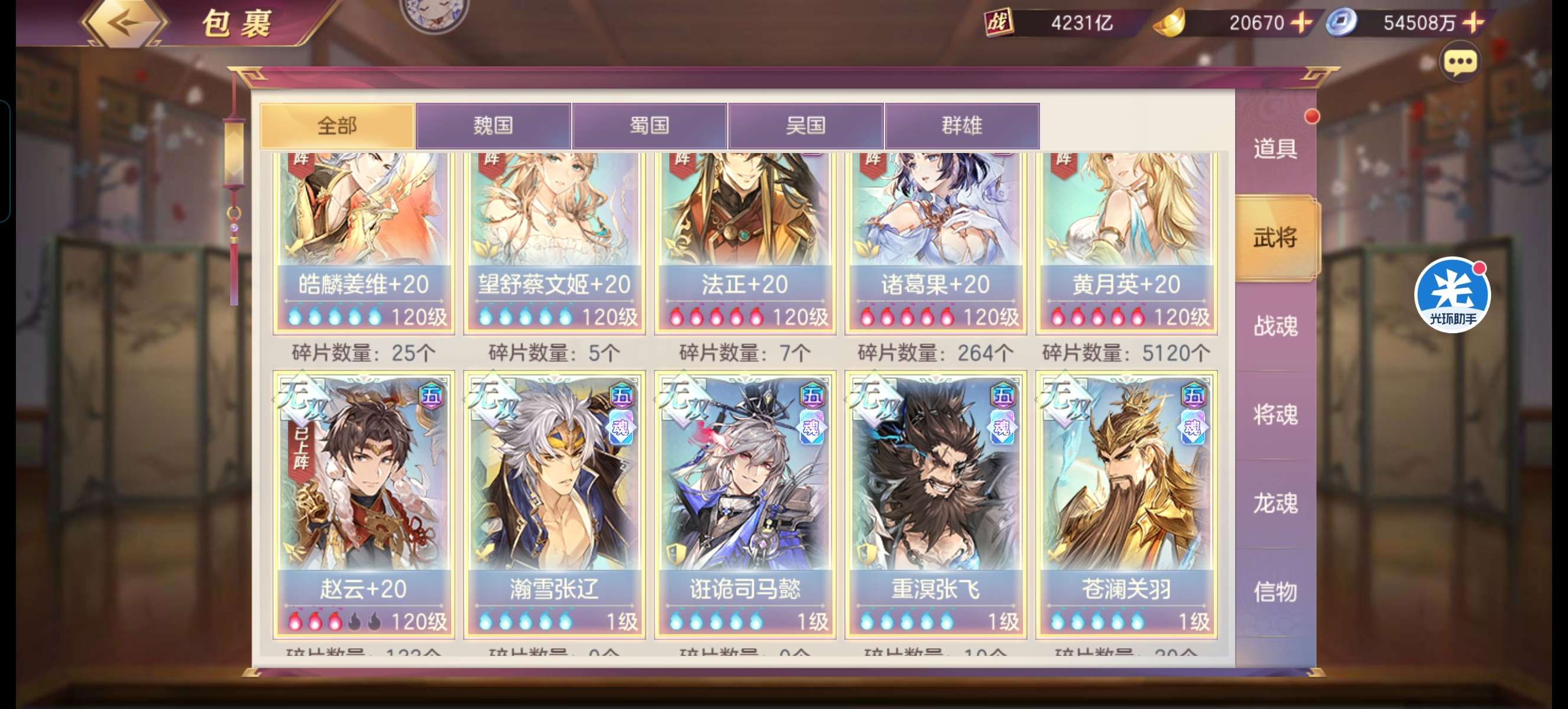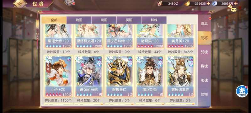 三国志幻想大陆【安卓官方】2165亿,五火最新魂将曹丕,四火姜维,快五火小吕,五火蔡文姬带皮肤,背包海量资源,还有个龙魂水晶,