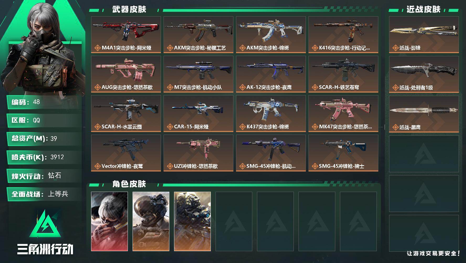 39m总资产-3912k哈夫币-60烽火等级-钻石-50战场等级-上等兵【干