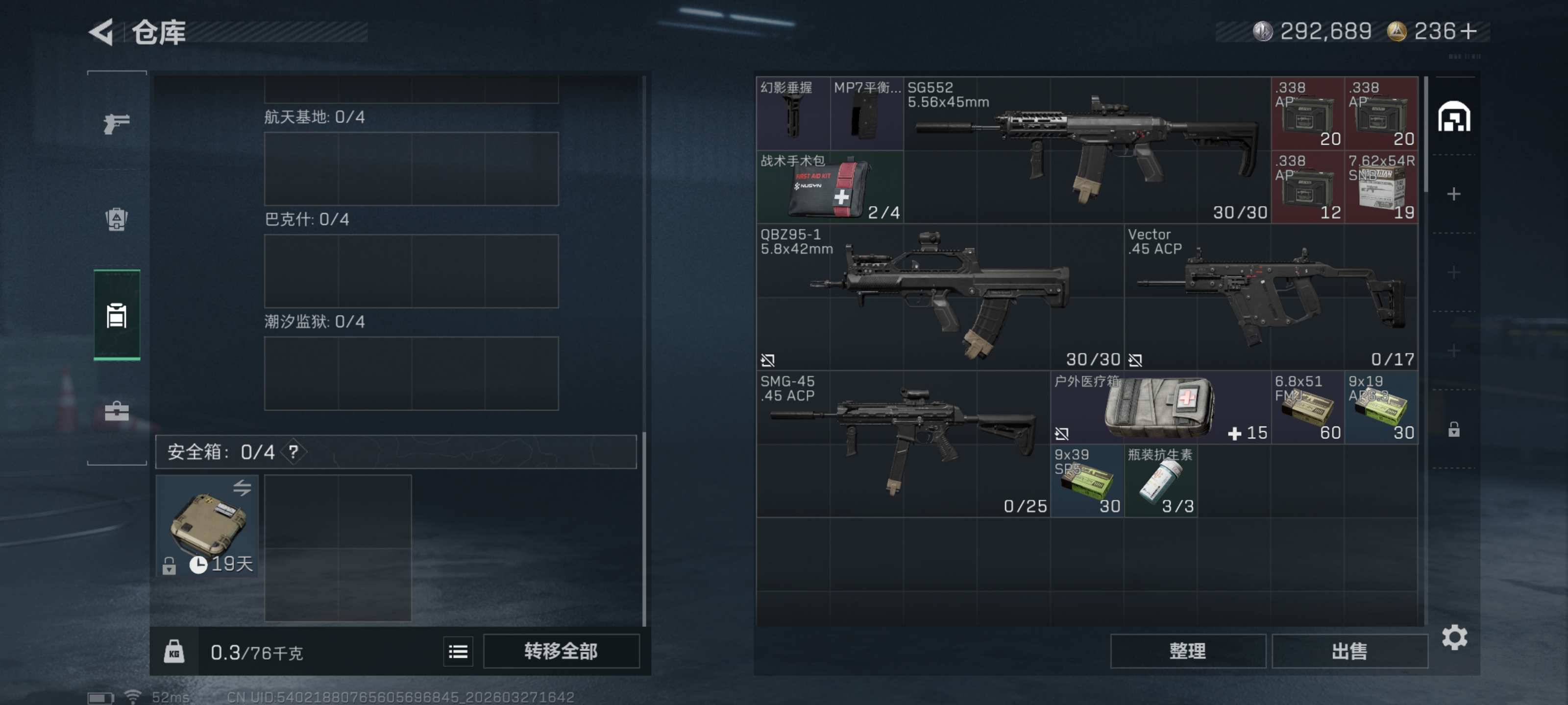 【暗星 52AW子弹 总资产9M,哈夫币292K,行动等级:60,近战数量:1