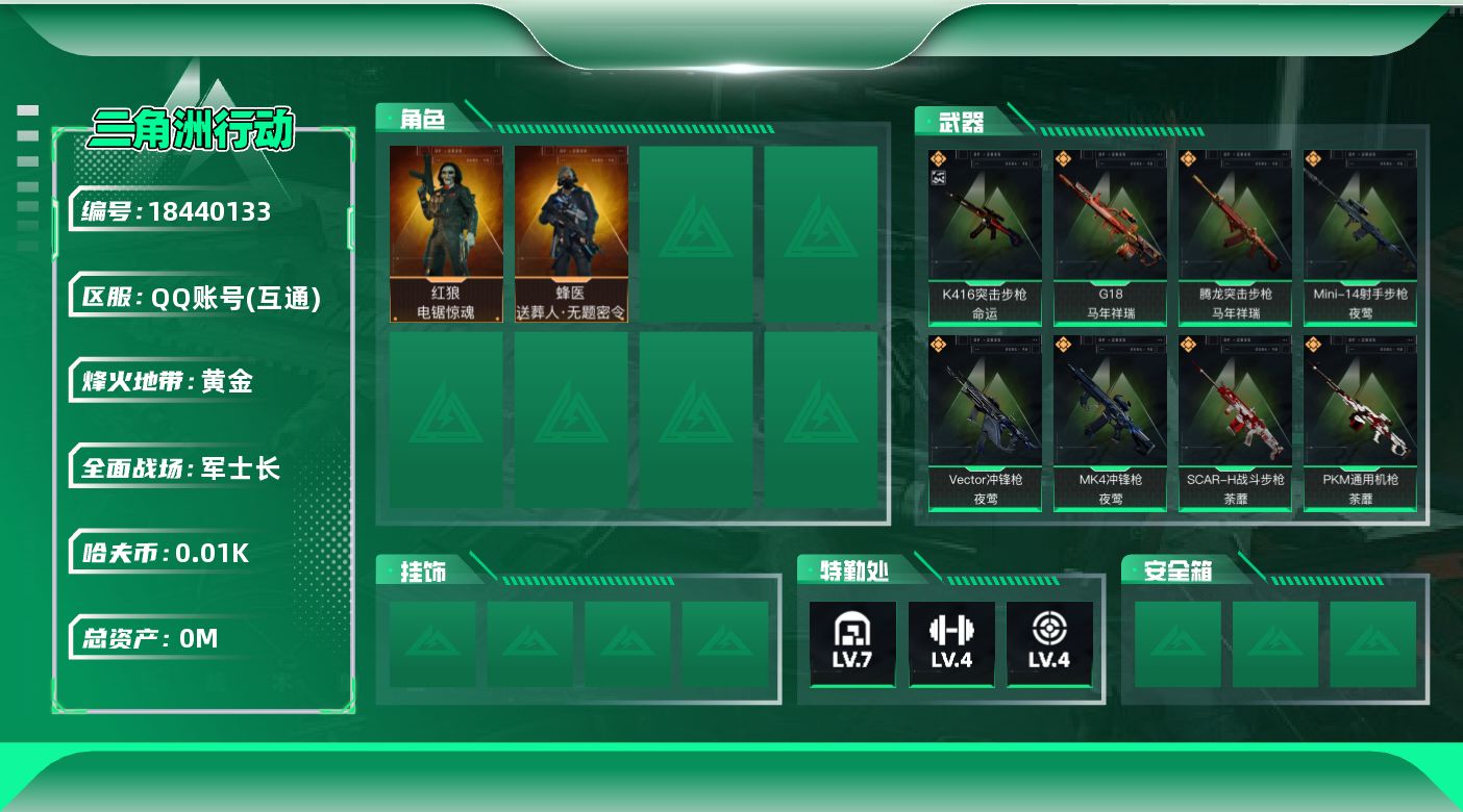 103m总资产-3335k哈夫币-60烽火等级-黑鹰-26战场等级-军士长【