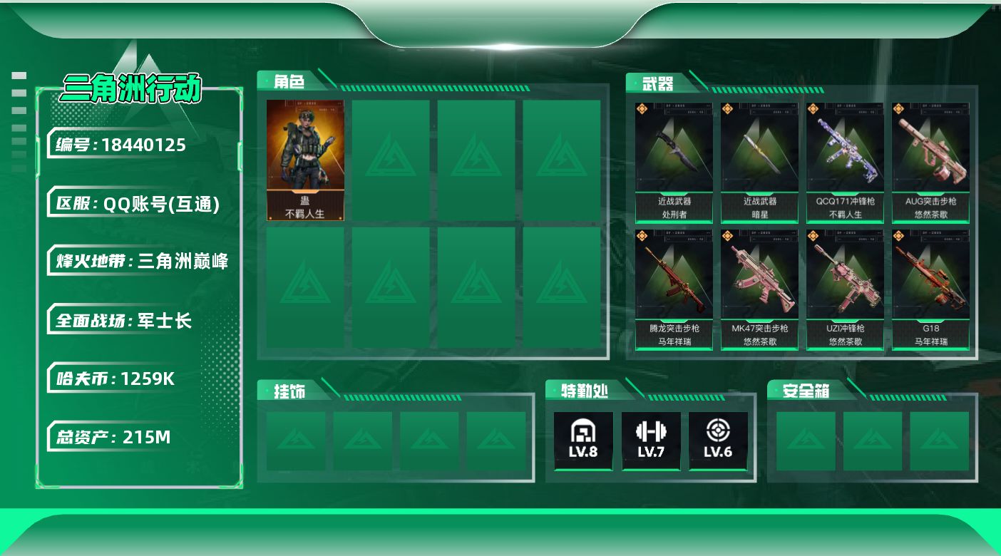 215m总资产-1259k哈夫币-60烽火等级-三角洲巅峰