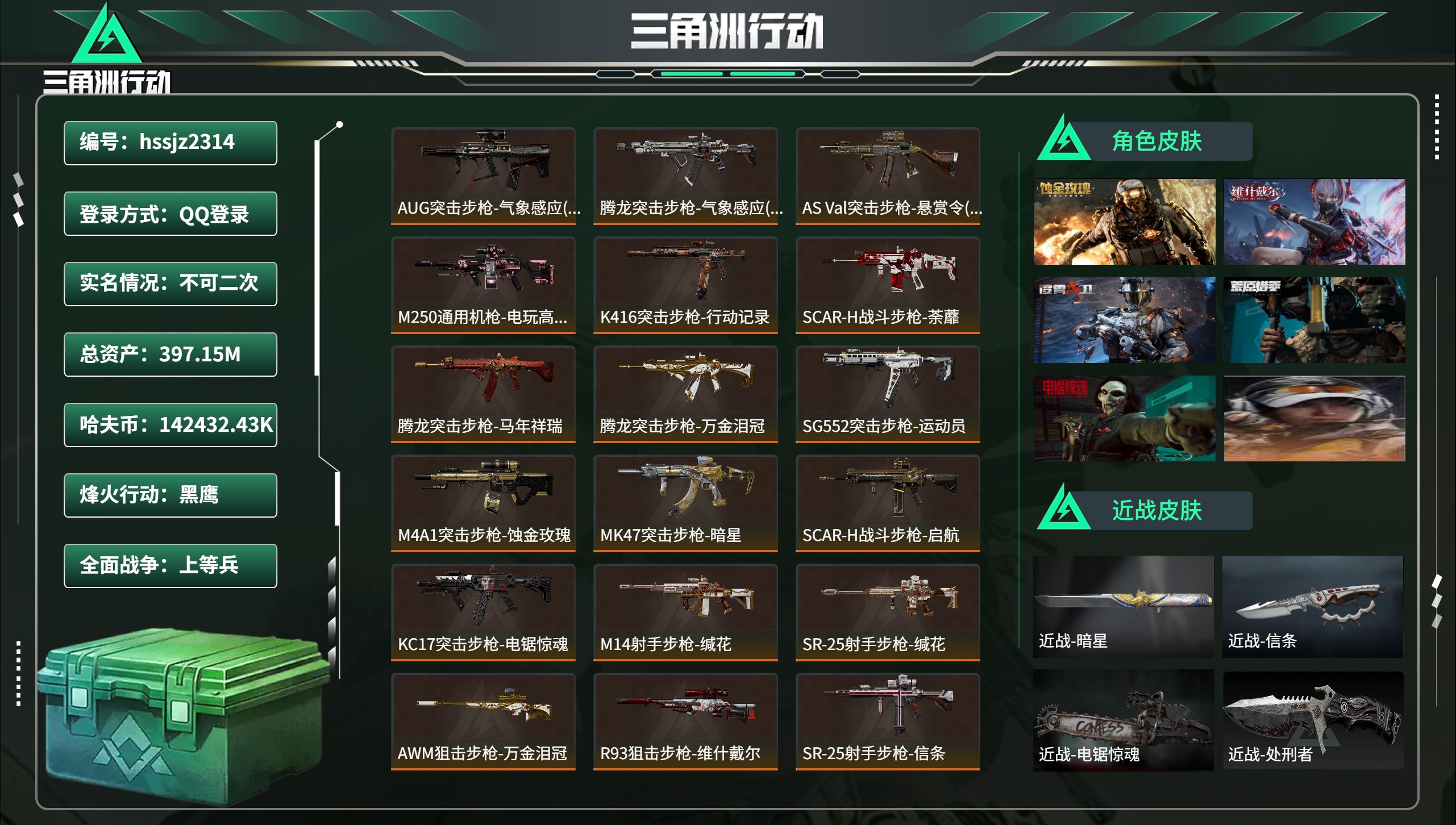 【热门皮肤号:双红+三刀+一典藏-黑天际线+凌霄戍卫+信条+赤枭+电锯】【Q区
