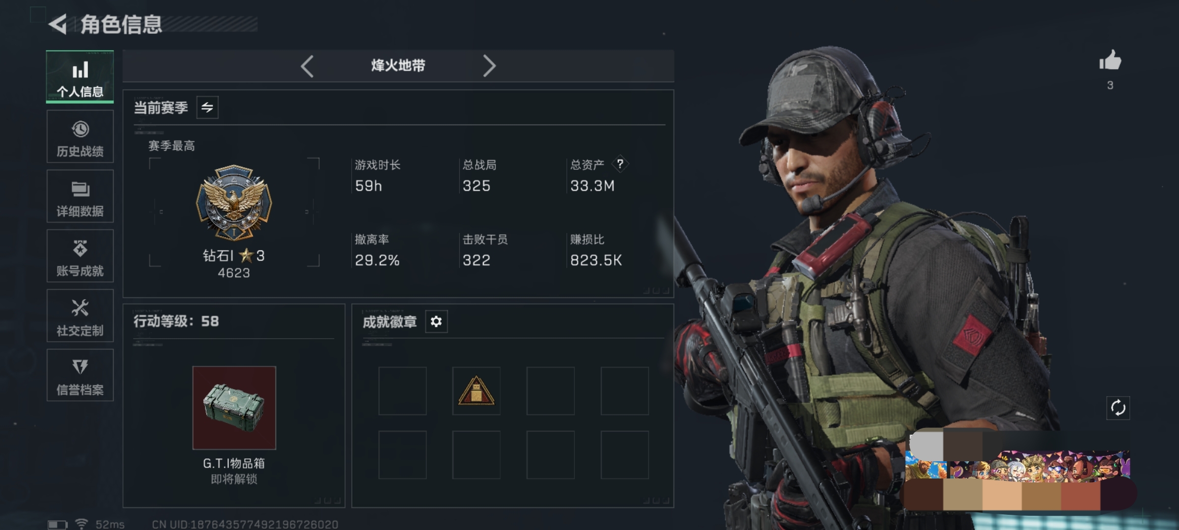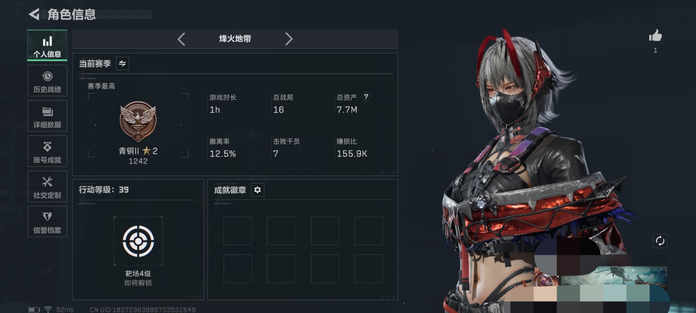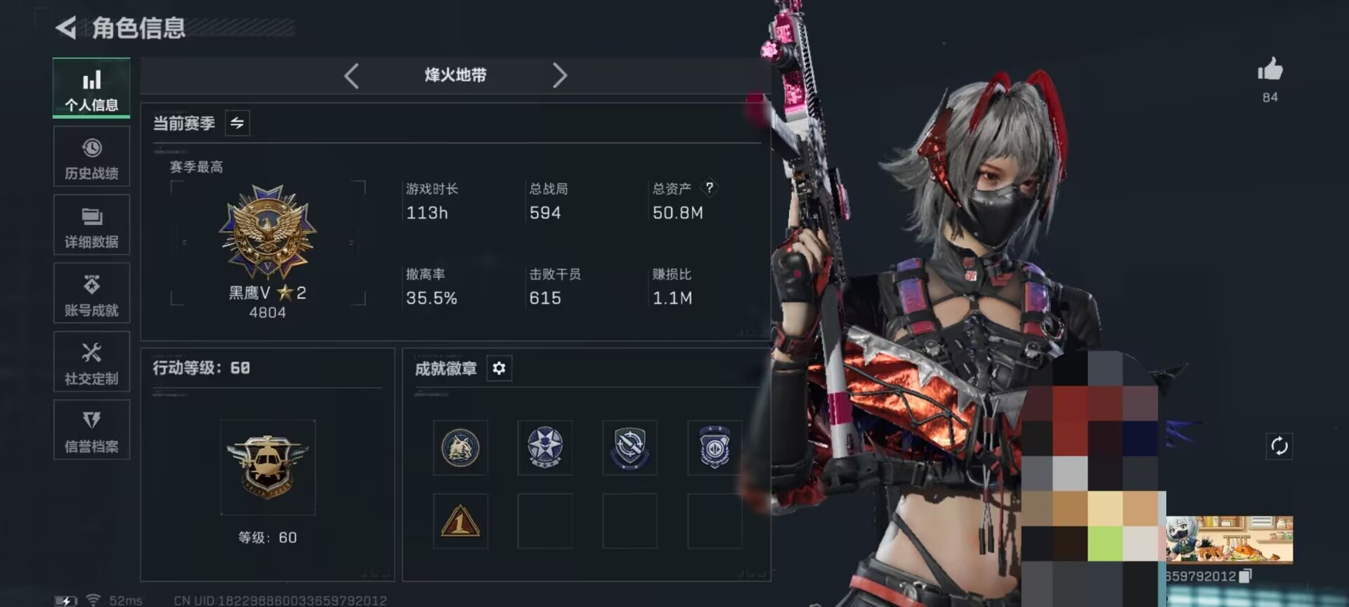 总资产50.8M-哈夫币433k-烽火地带等级60-烽火地带段位黑