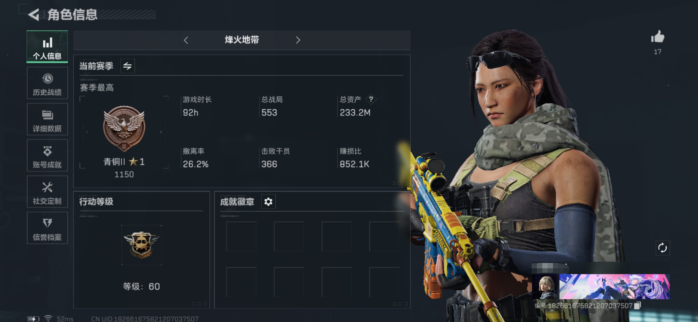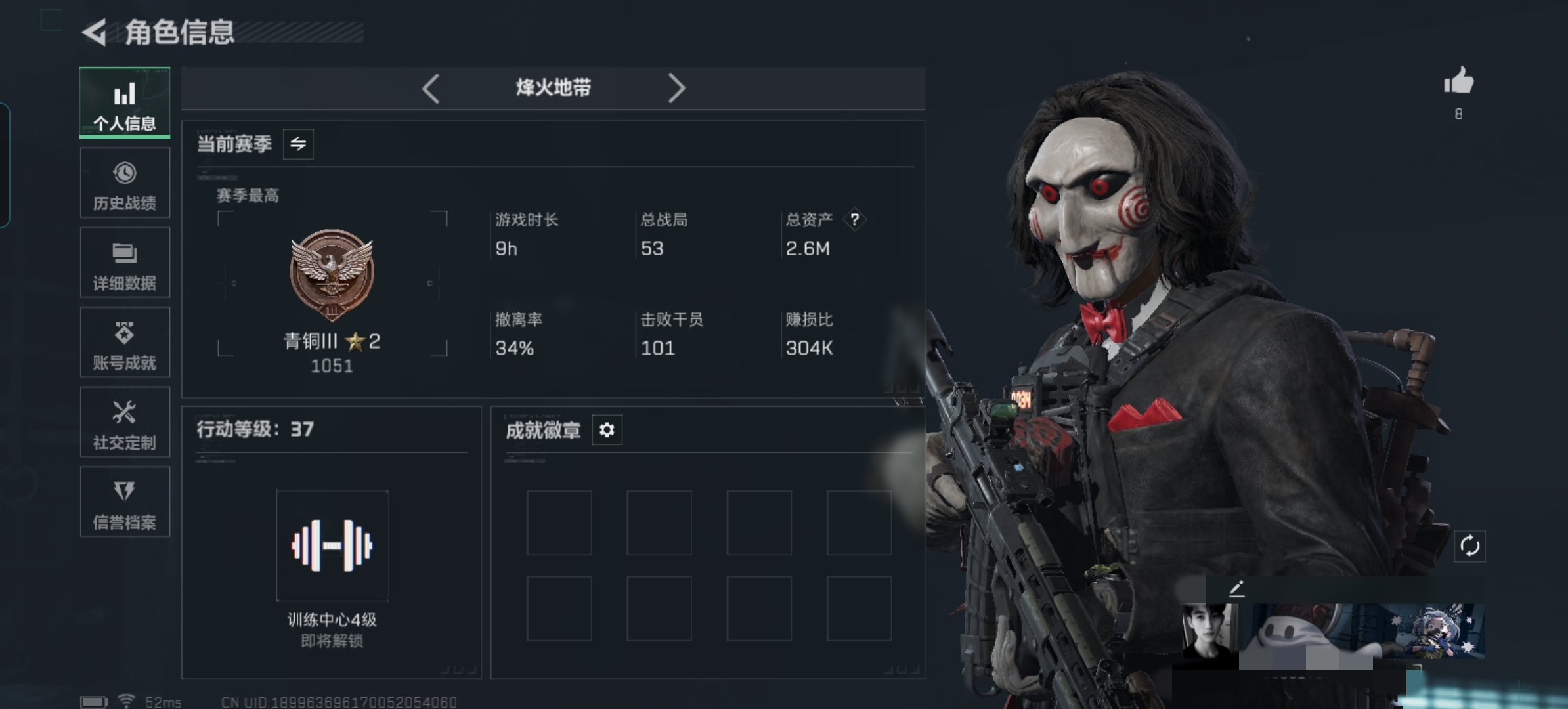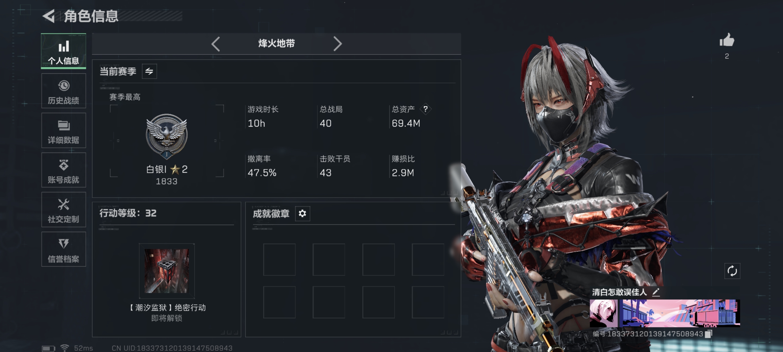 总资产50.8M-哈夫币433k-烽火地带等级60-烽火地带段位黑