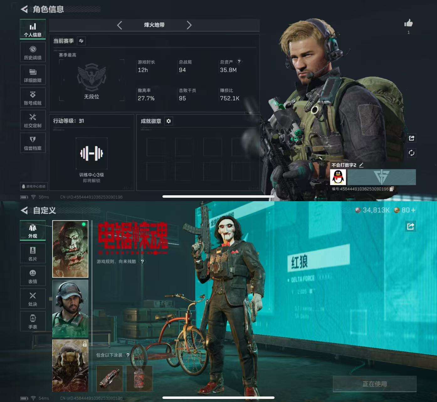 196纯币号-红狼-电锯惊魂-烽火等级31总资产35M 哈夫币34813K