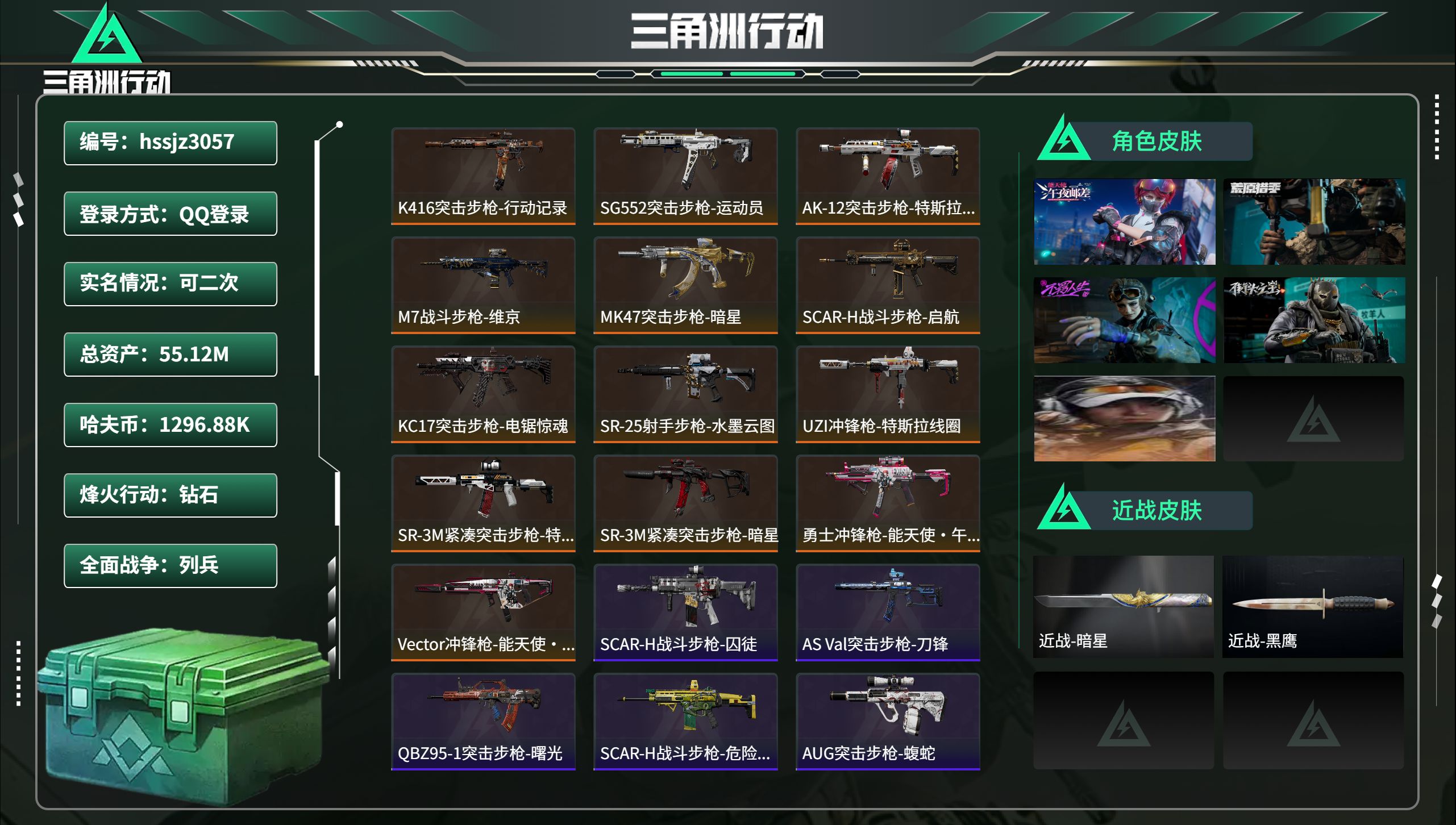 159m总资产-55724k哈夫币-60烽火等级-黑鹰-27战场等级-尉官