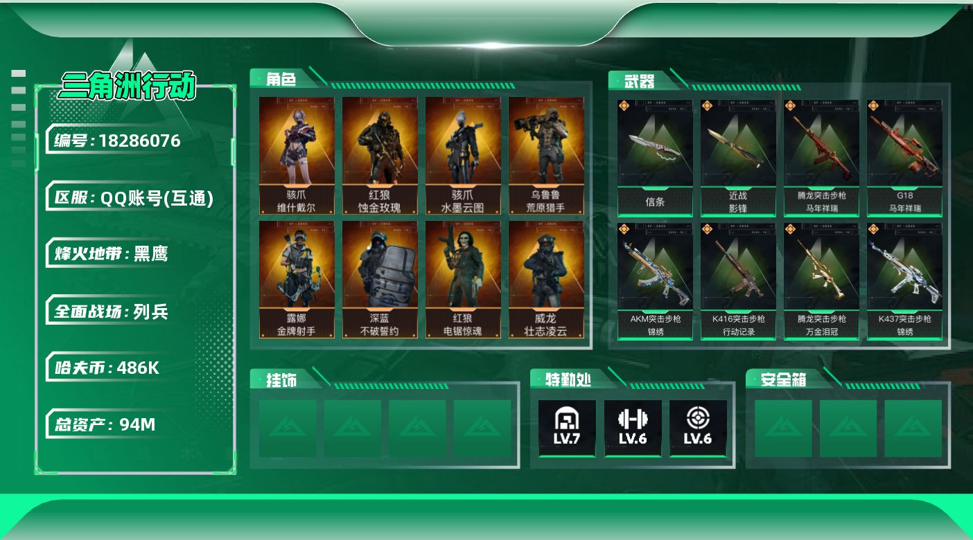 36m总资产-290k哈夫币-60烽火等级-黑鹰-50战场等级-军士长ws01