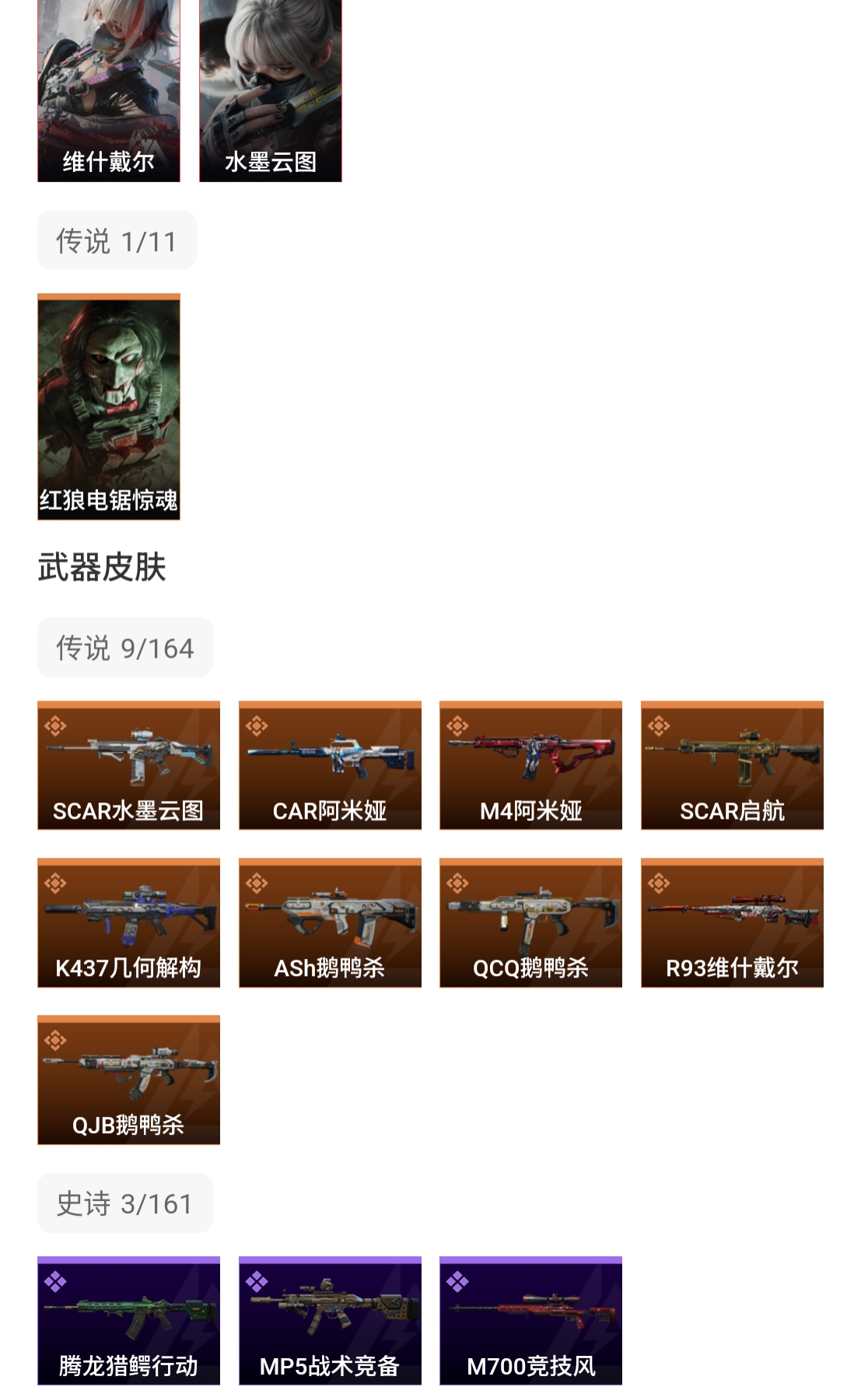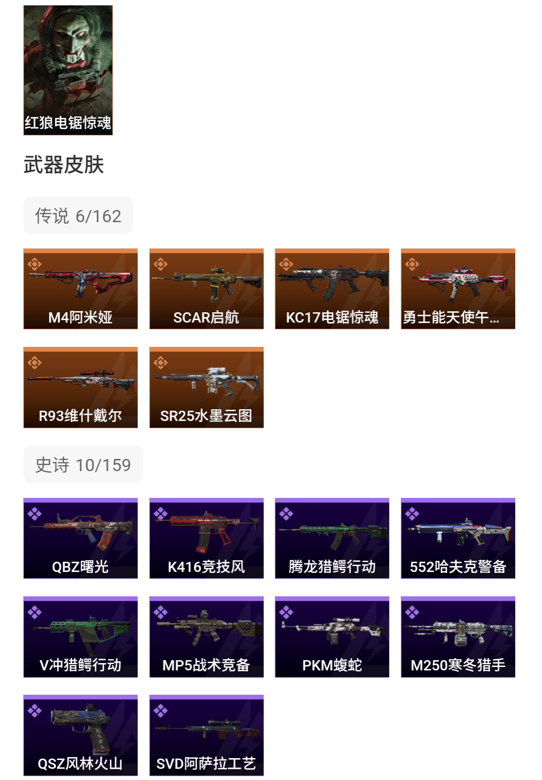 麦晓雯双红皮♥水墨云图♥红狼电锯惊魂+露娜金牌射手♥手册已开♥还有几个大红♥几把满改枪!几件6套!