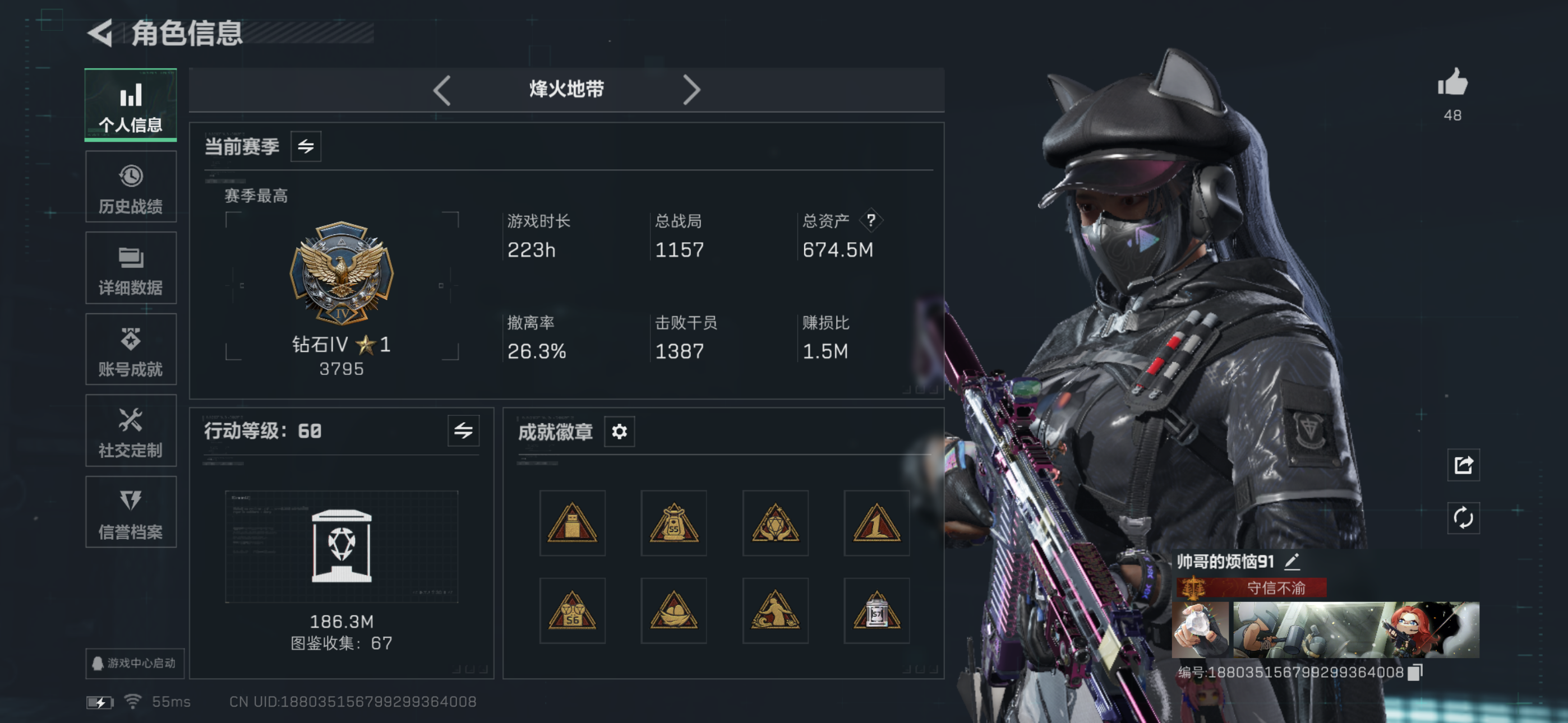 227m总资产-1346k哈伏币-60烽火等级-三角洲巅峰-29战场等级-上等