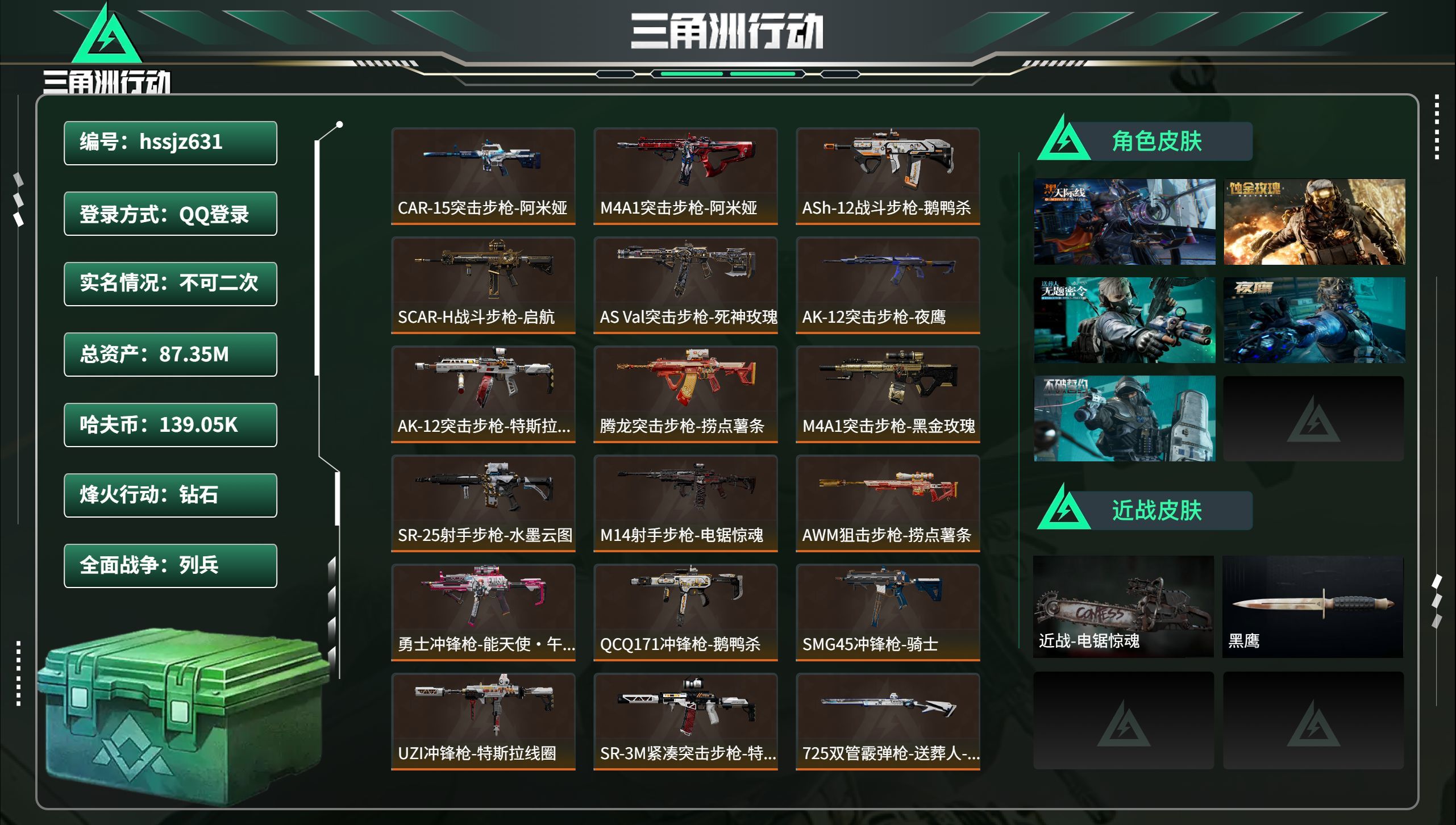 总资产(M):37M/哈夫币(K):1174K/哈夫币(K):1174K/全面战场等级:28_段位:
