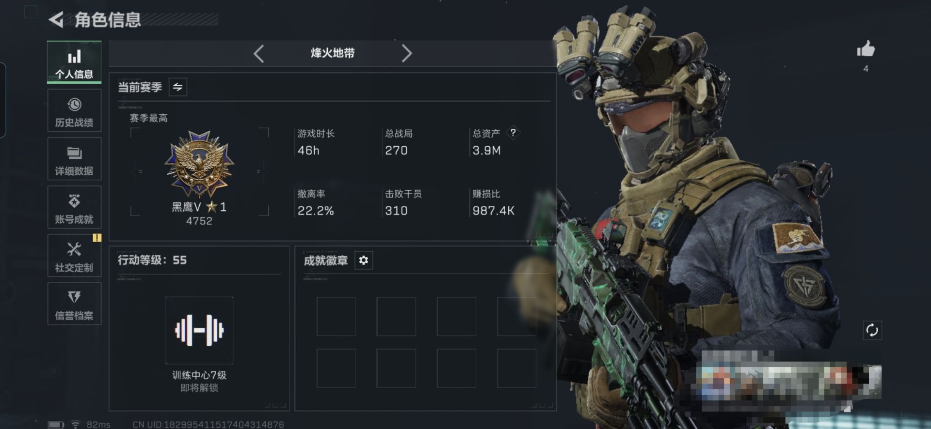 【总资产(M)】3.9M【哈夫币】367696【行动等级】55