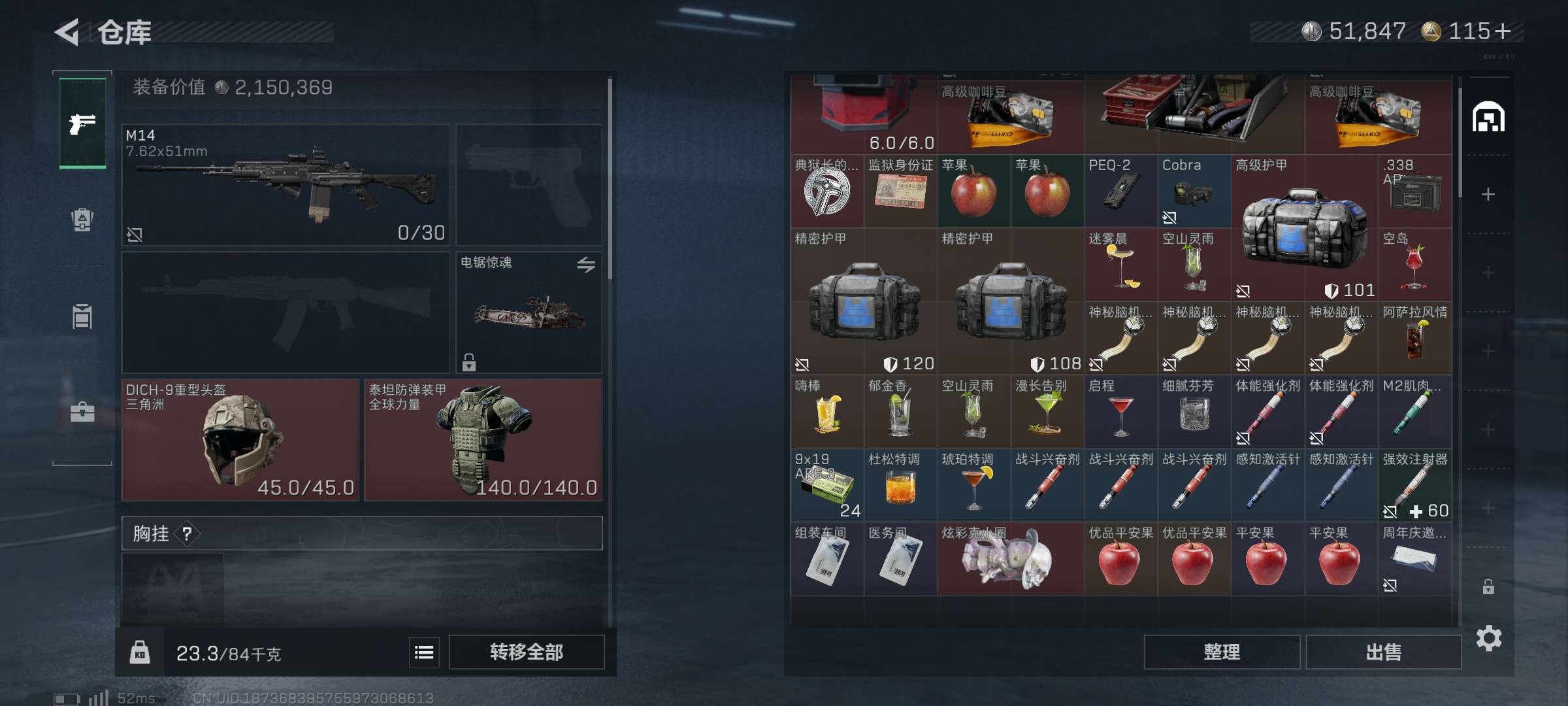 51级现金号 -总价值90.7M-哈夫币75128k-烽火地带等级5