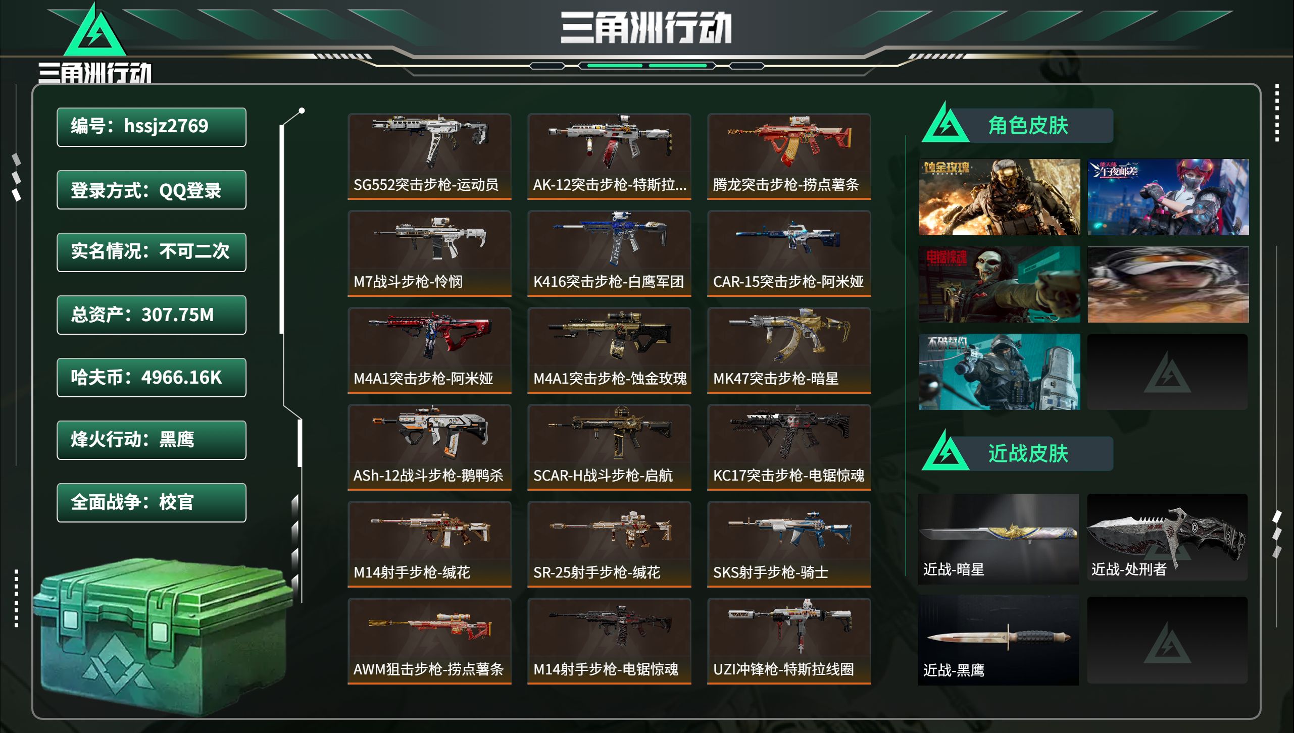 153m总资产-823k哈夫币-60烽火等级-黑鹰-28战场等级-上等兵