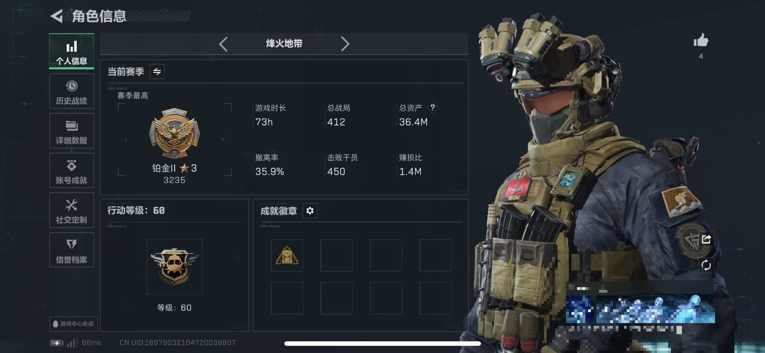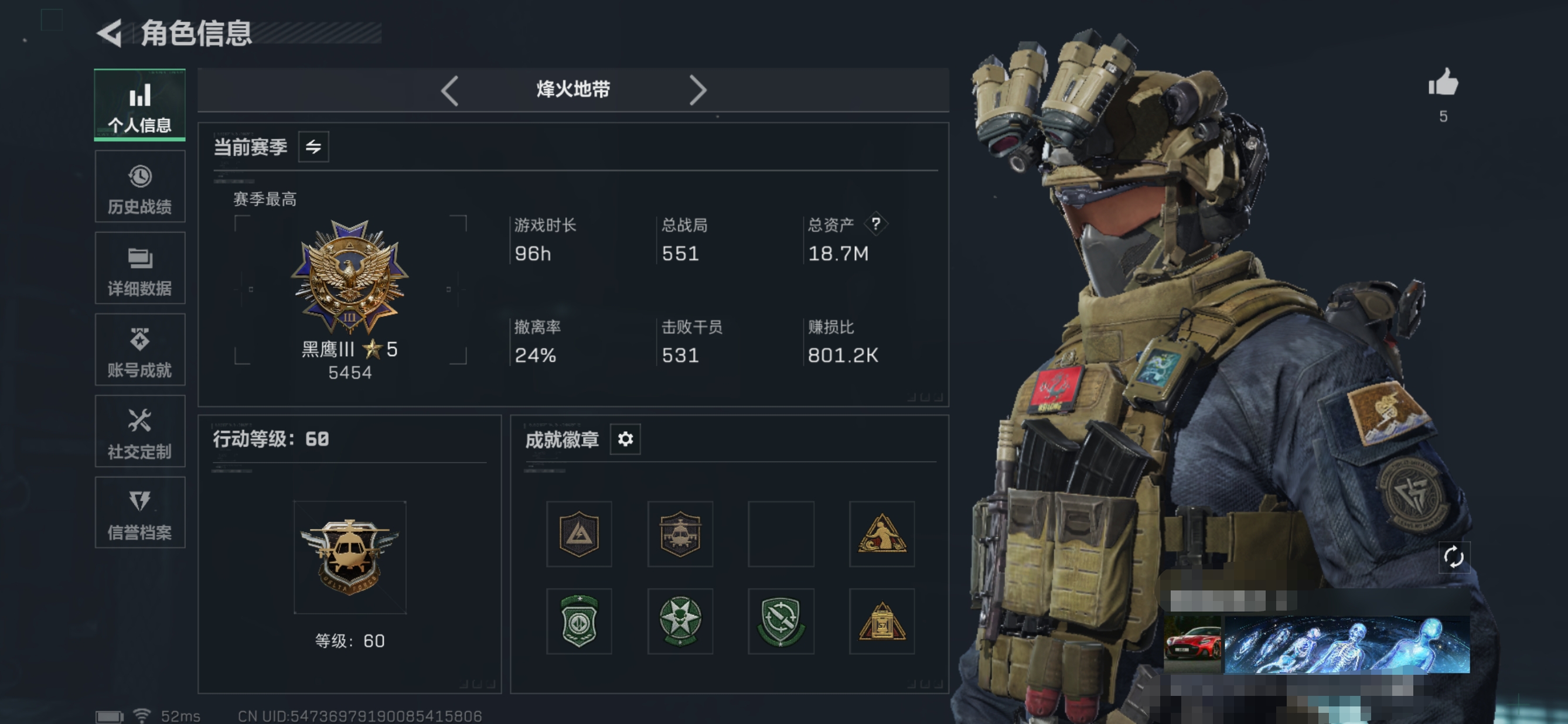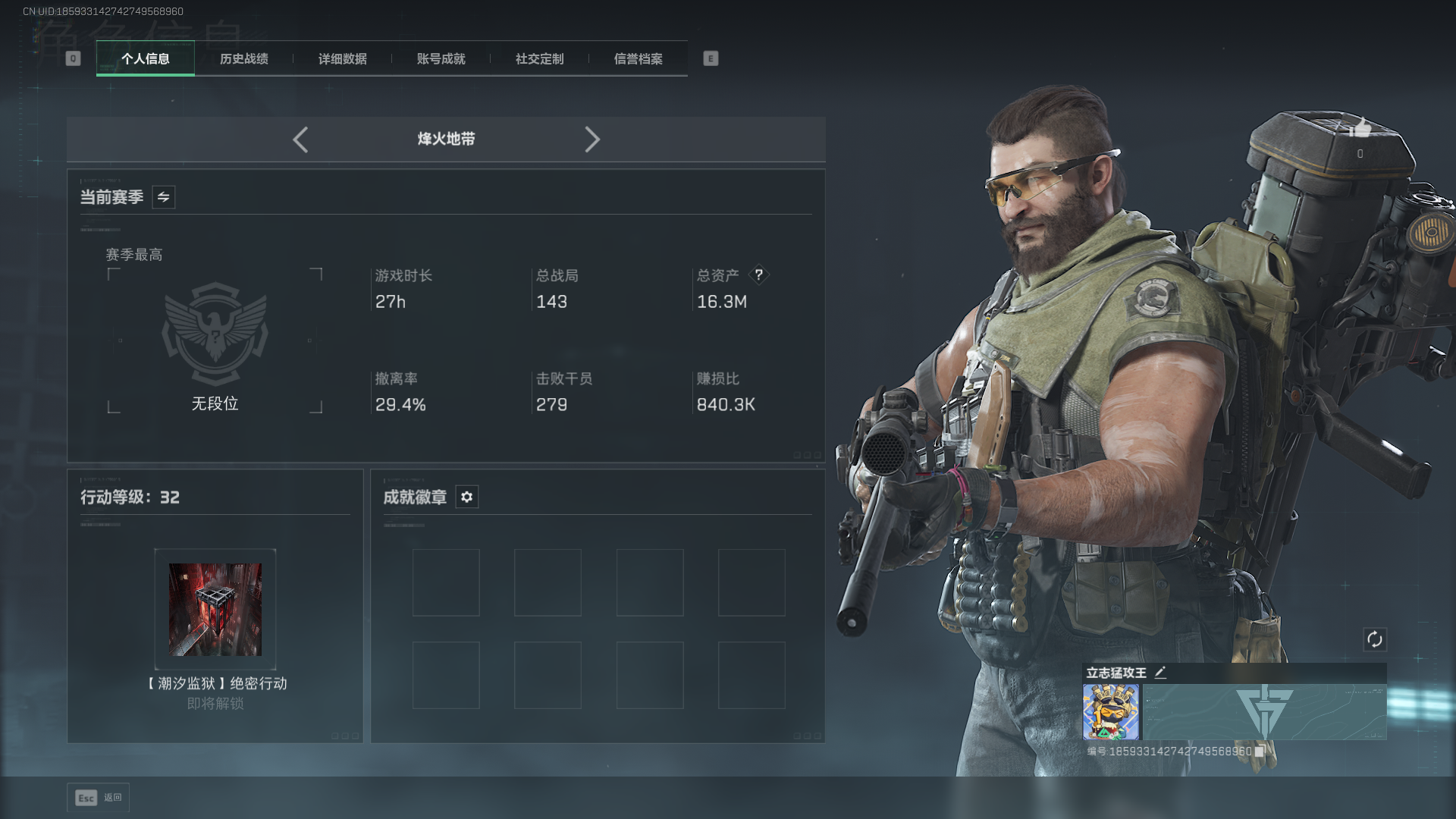 总价值20M-哈夫币7184K-烽火地带等级60-烽火地带段位