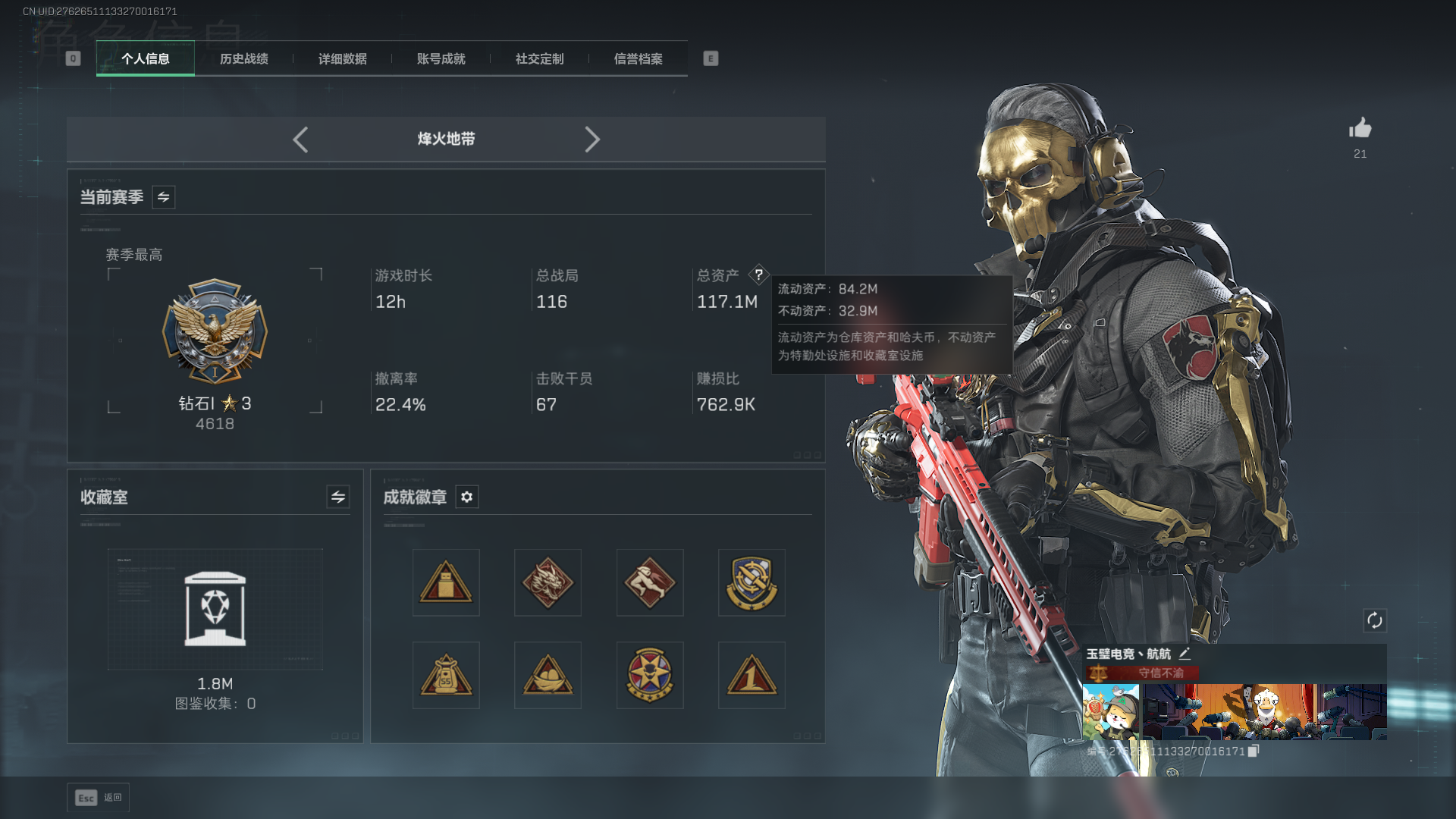 总价值202.3M-哈夫币58112K-烽火地带等级60-烽火地带段位:钻石