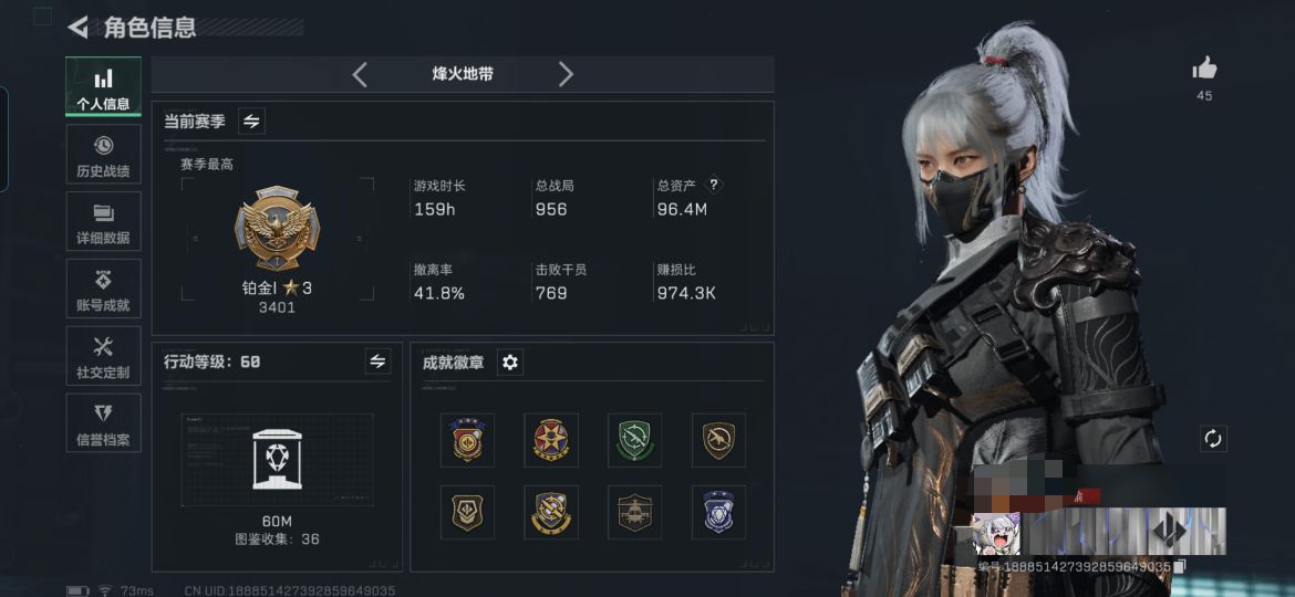 总价值25.9M-哈夫币384k-烽火地带等级60-烽火地带段位黑鹰