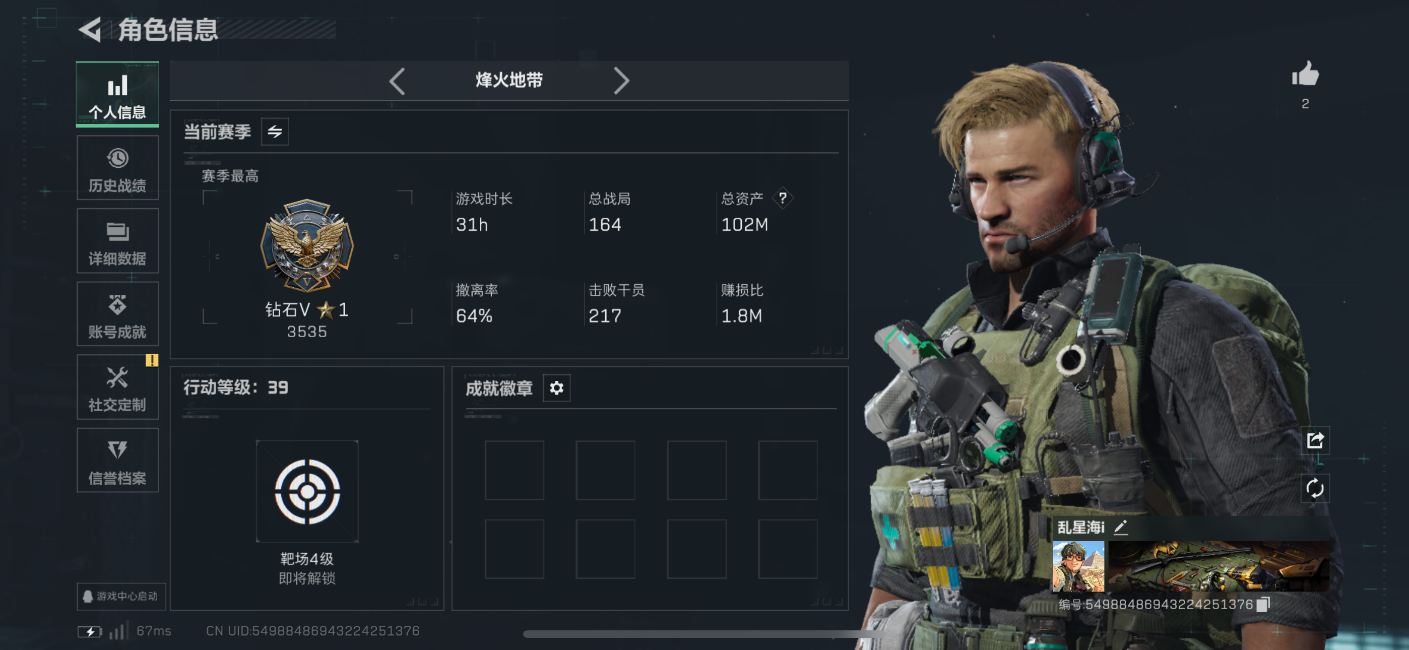 总资产161.4M,哈夫币 2026.64K,战场等级:25 列兵,行动等级:60