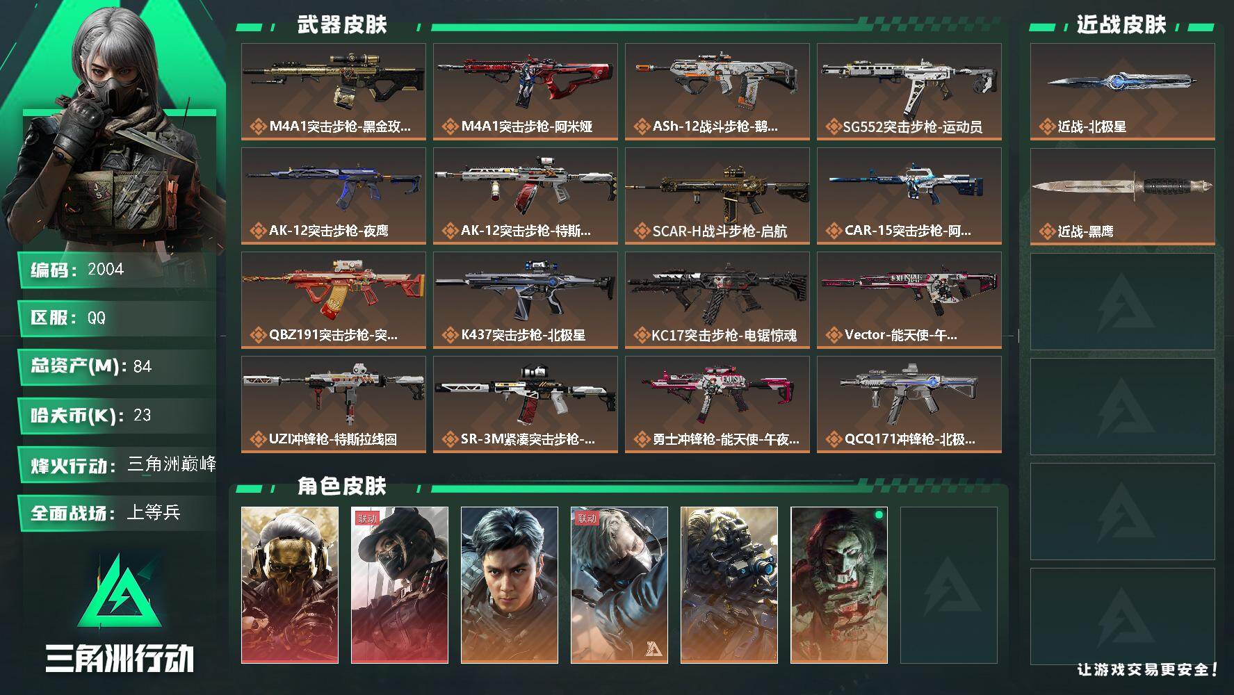总资产(M):84M/哈夫币(K):23K/哈夫币(K):23K/传说枪皮数:24/全面战场等级:2