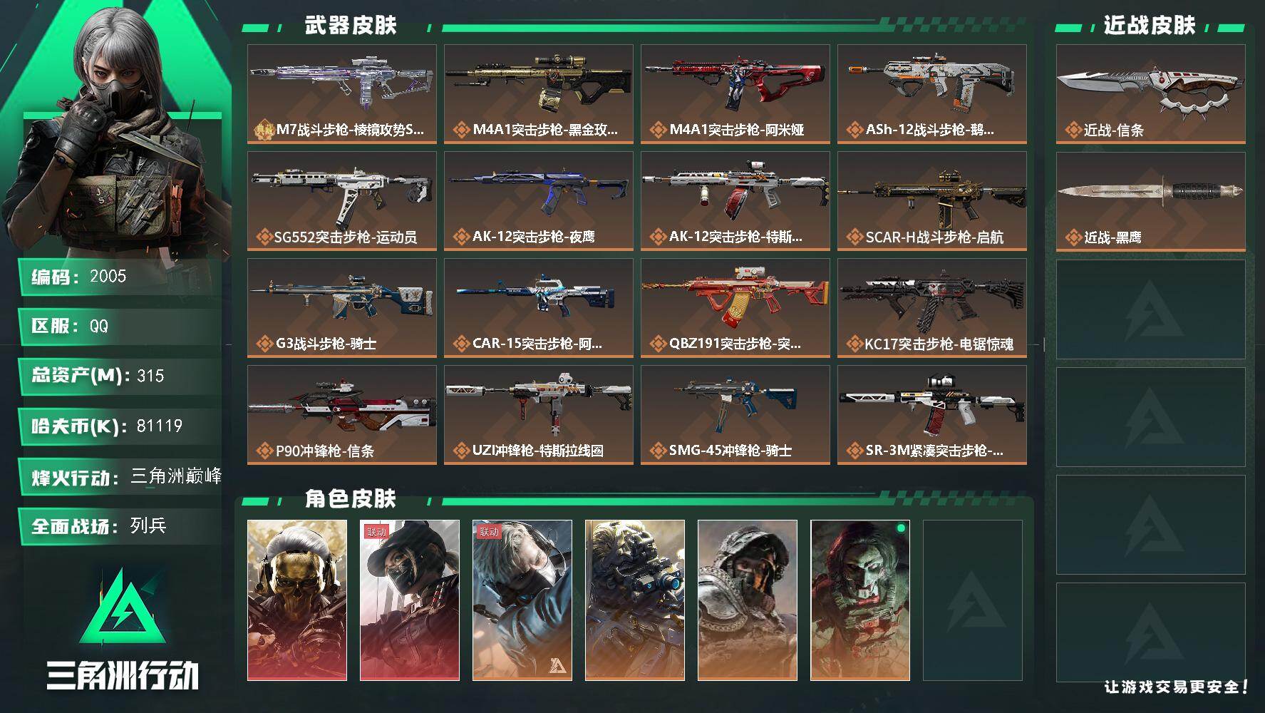 总资产(M):315M/哈夫币(K):81119K/哈夫币(K):81119K/传说枪皮数:25/全