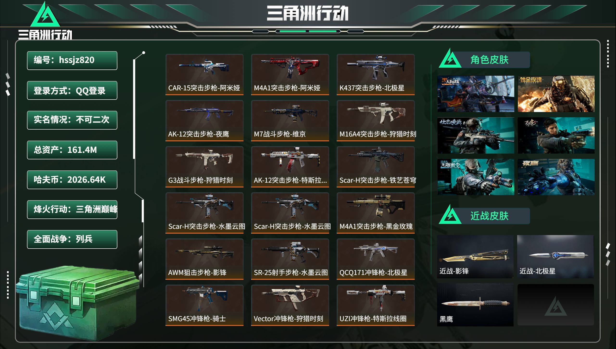 总资产(M):173M/哈夫币(K):65631K/哈夫币(K):65631K/传说枪皮数:9/全面