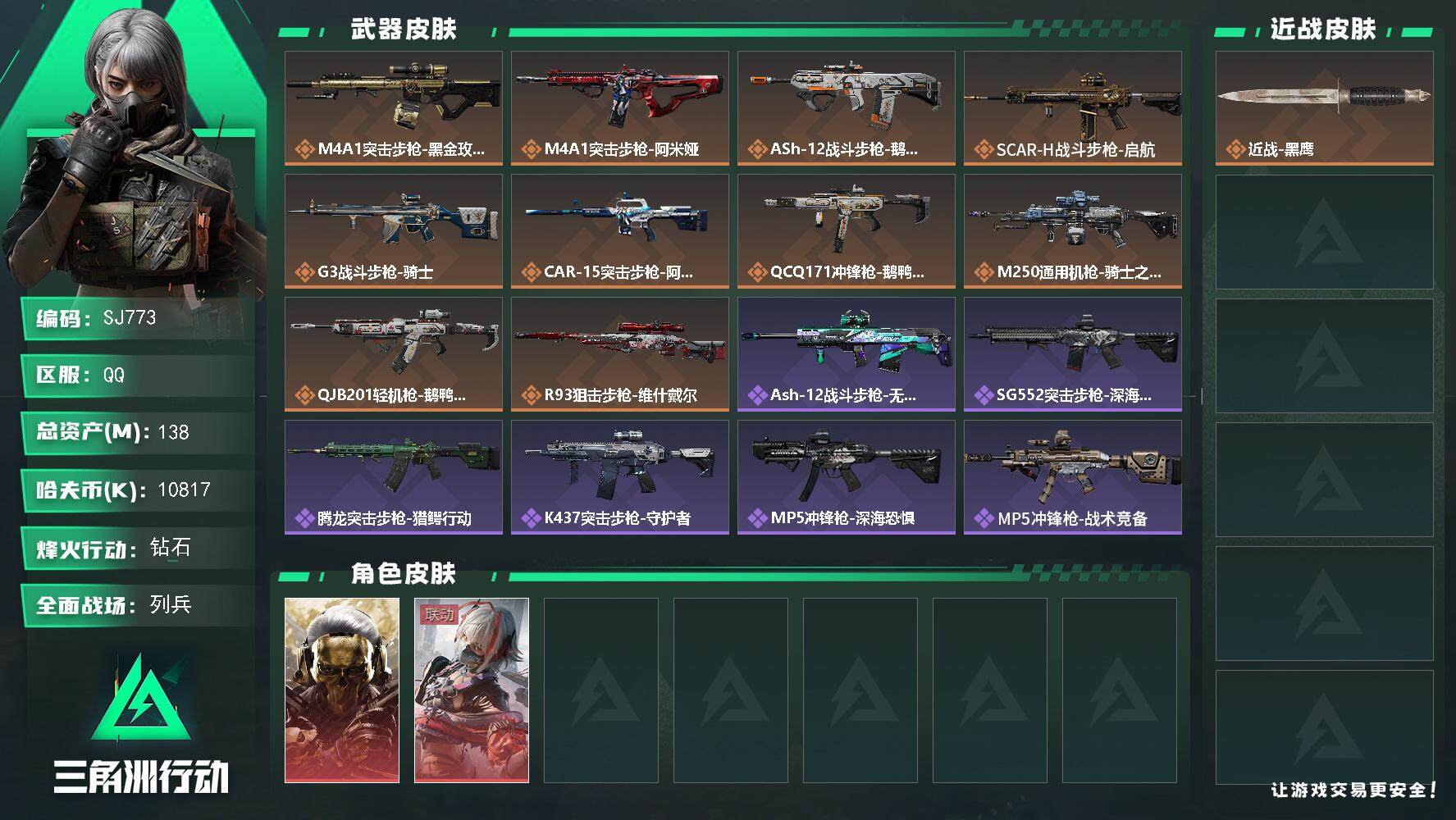 【SJ773】【无封禁记录】行动等级:60 总资产:138.2M 哈夫币:10