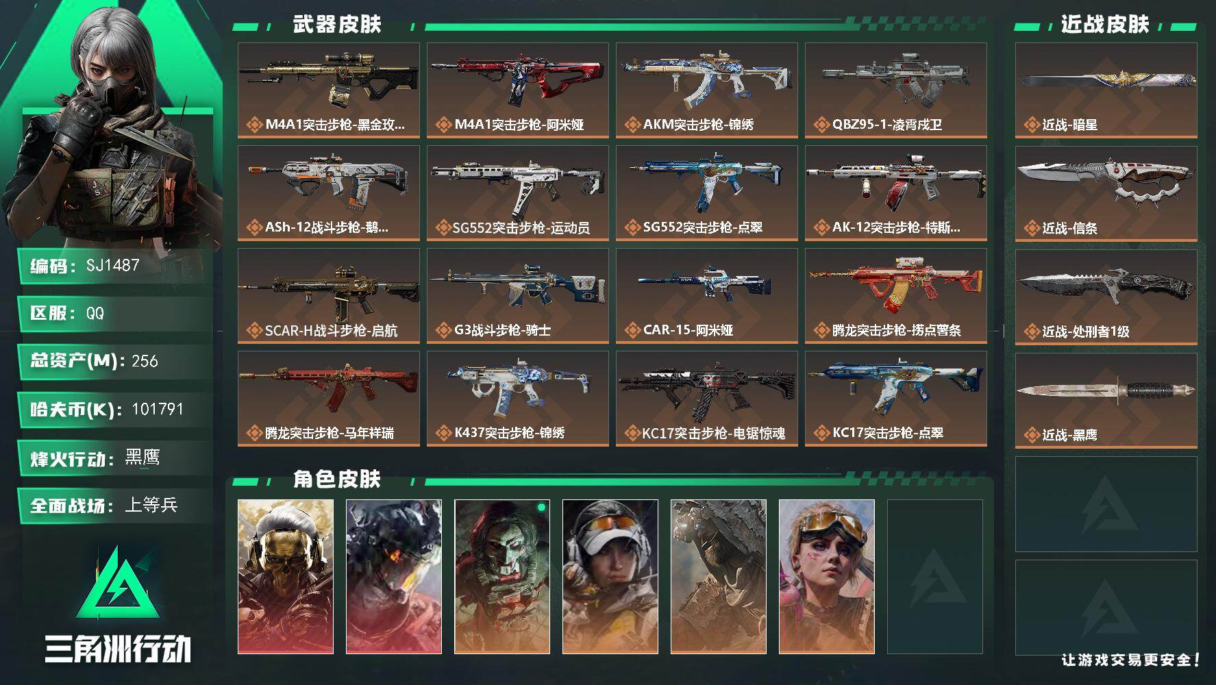 【SJ1487】256m总资产-101791k哈夫币-60烽火等级-黑鹰-43
