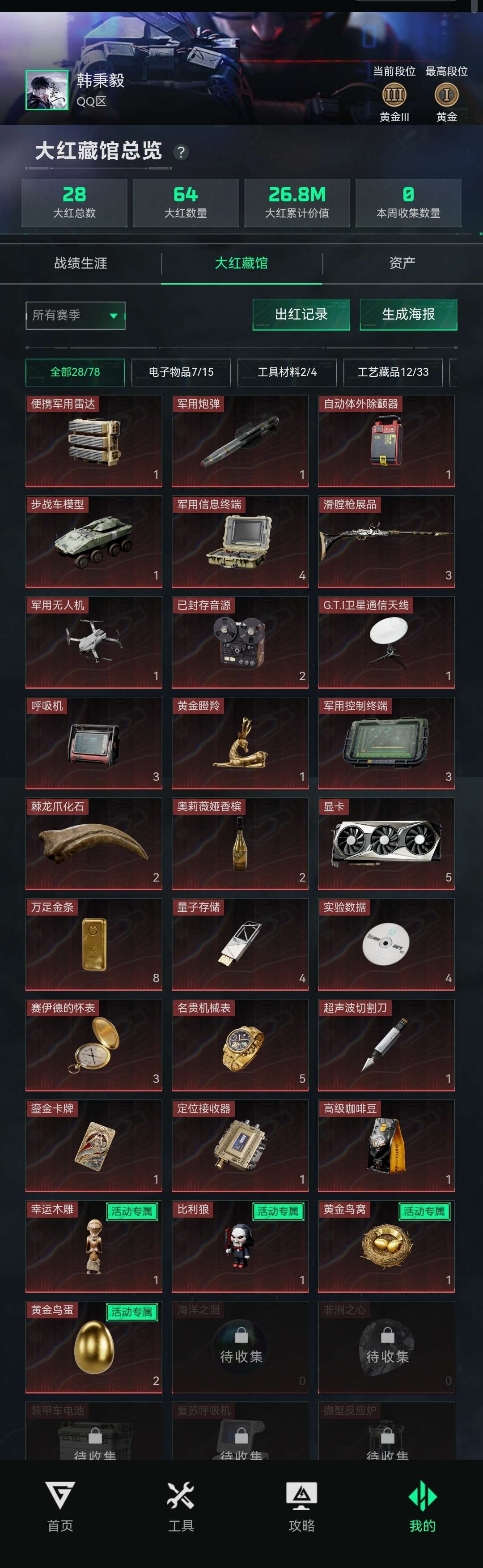 359m总资产-2548k哈伏币-60烽火等级-黑鹰-18战场等级-列兵