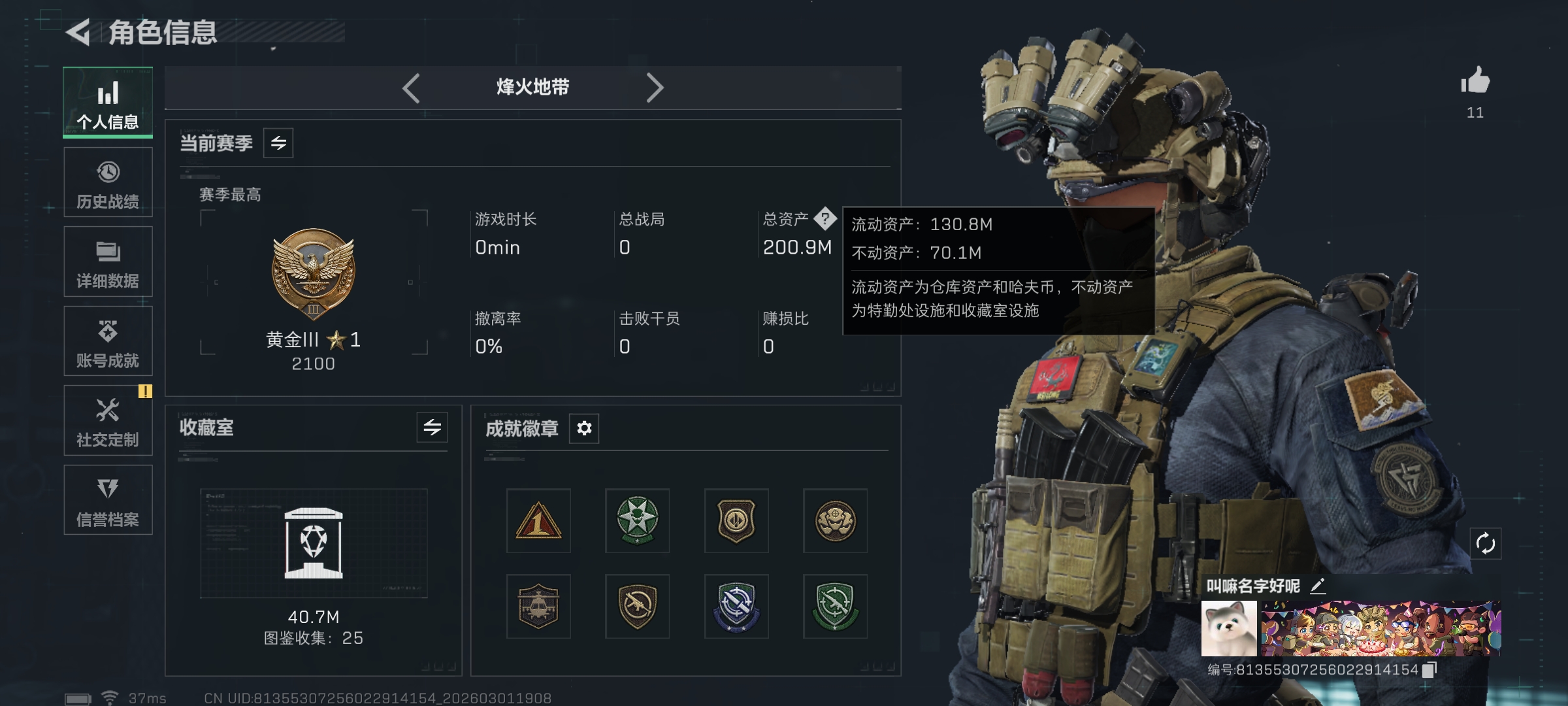 49m总资产-26039k哈伏币-25烽火等级-黄金-1战场等级-无军衔【干