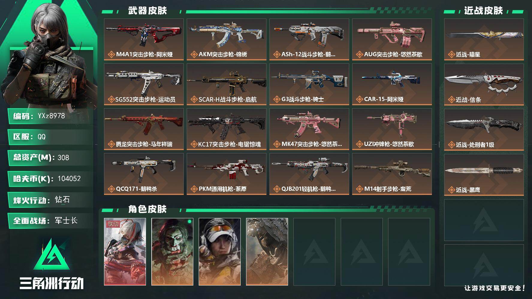 烽火段位黑鹰3 战场段位军士长1 总资产478.3M 哈夫币5505W
