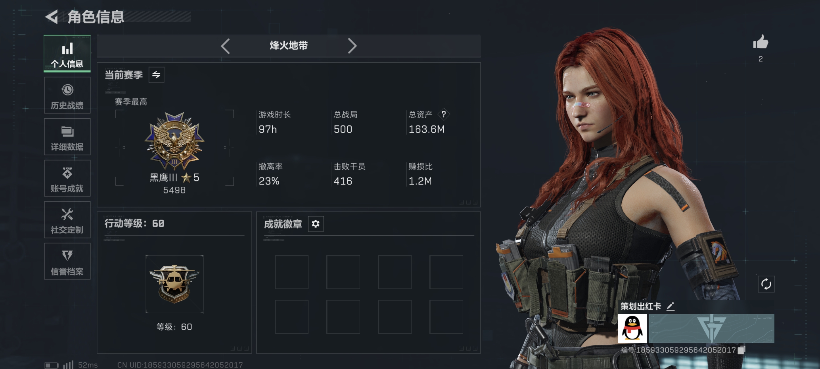 95m总资产-38485k哈伏币-57烽火等级-三角洲巅峰-5战场等级-无军衔