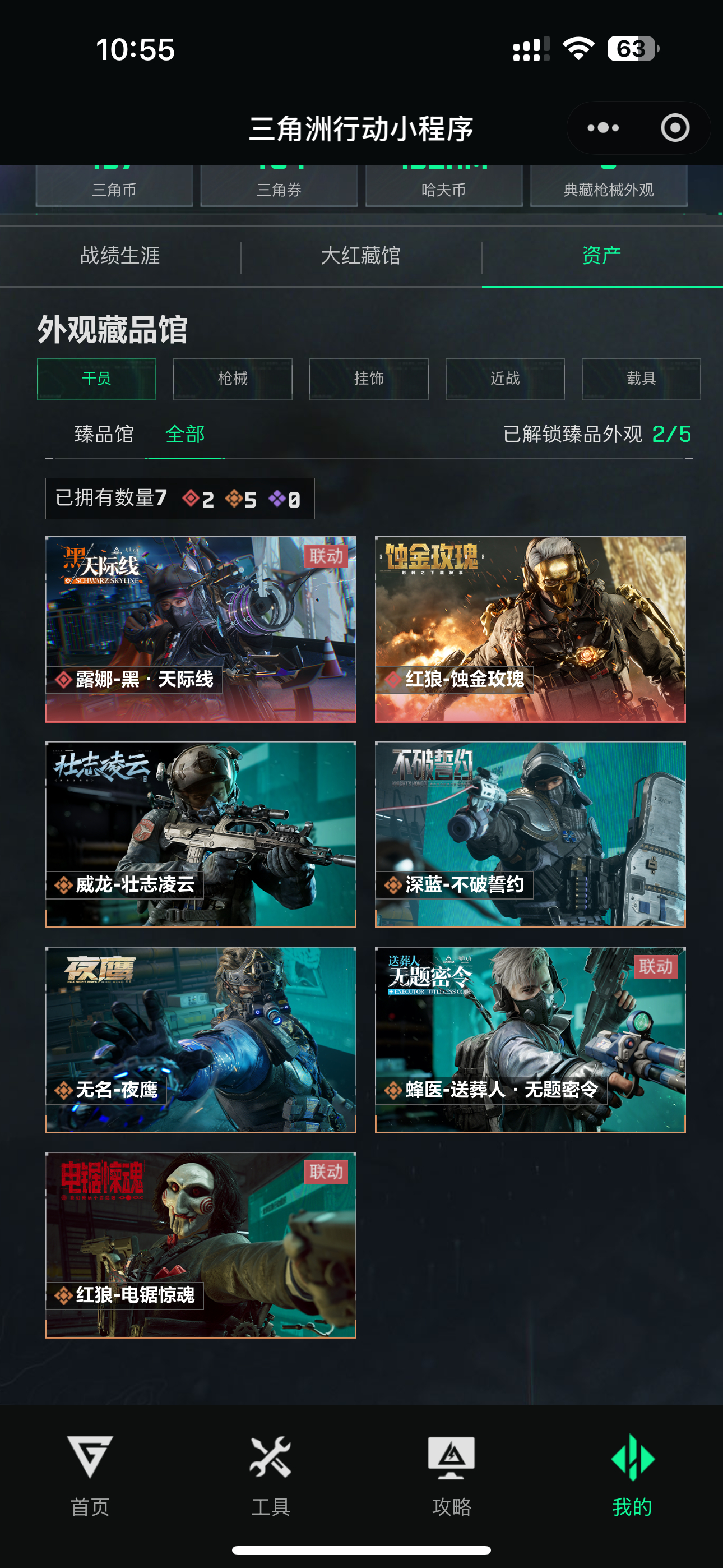 总资产225.8m 哈夫币1862k 6干员皮 2刀 飞虎,,蚀金玫瑰,夜鹰,壮志凌云,送葬人·无