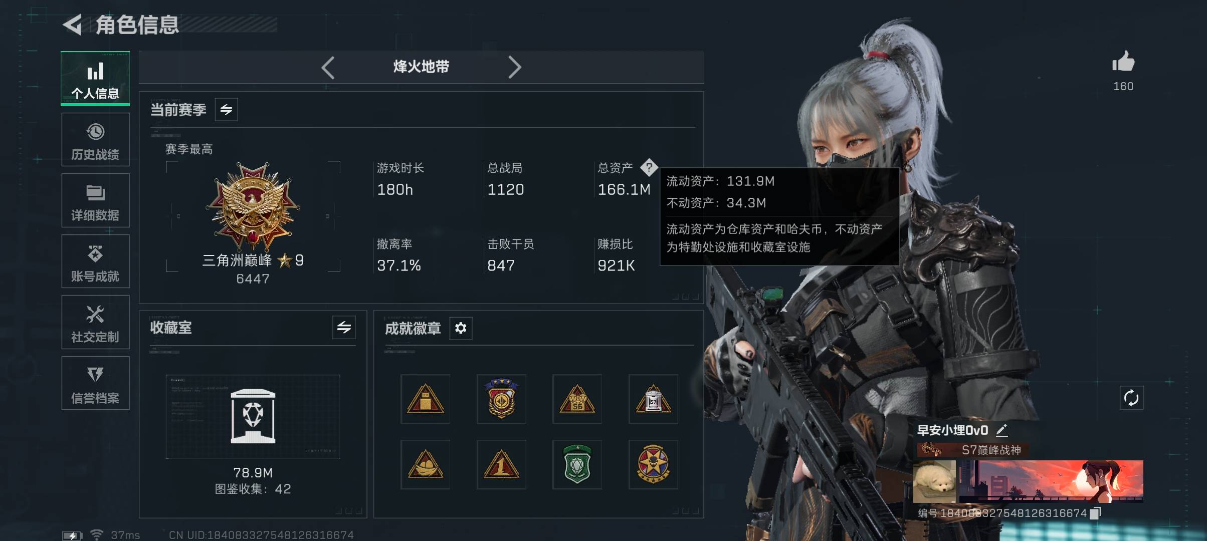 hssjz539 总资产161.23M,哈夫币 2335.05K,战场等级:40 上等兵,行动等级: