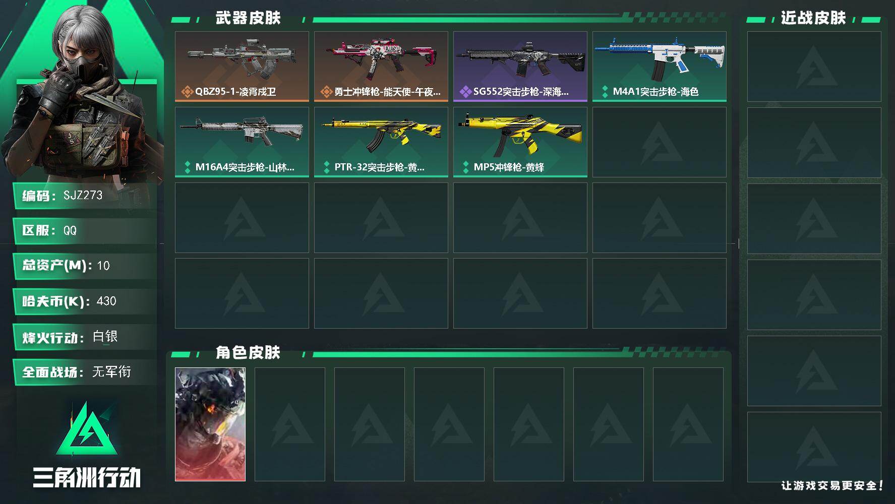 10m总资产-430k哈伏币-22烽火等级-白银-1战场等级-无军衔【干员外