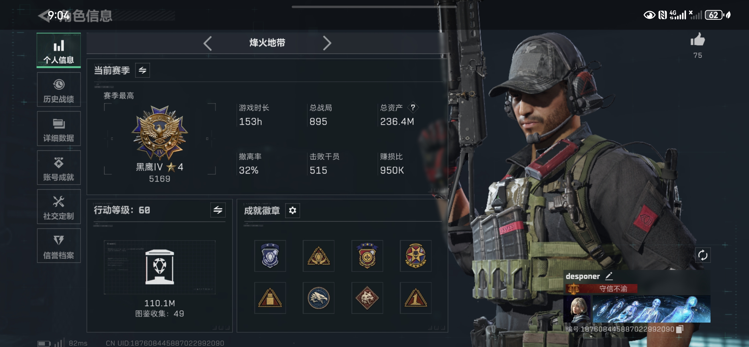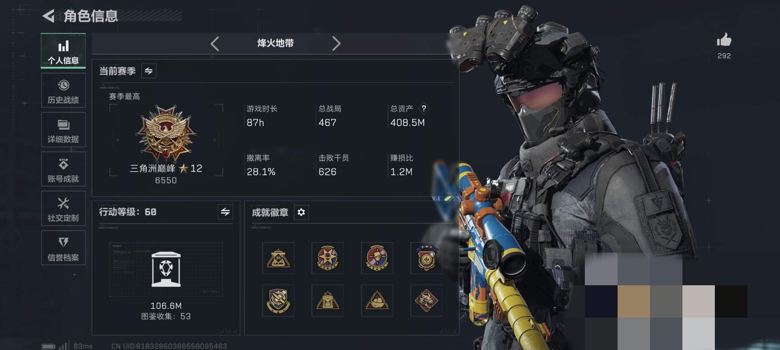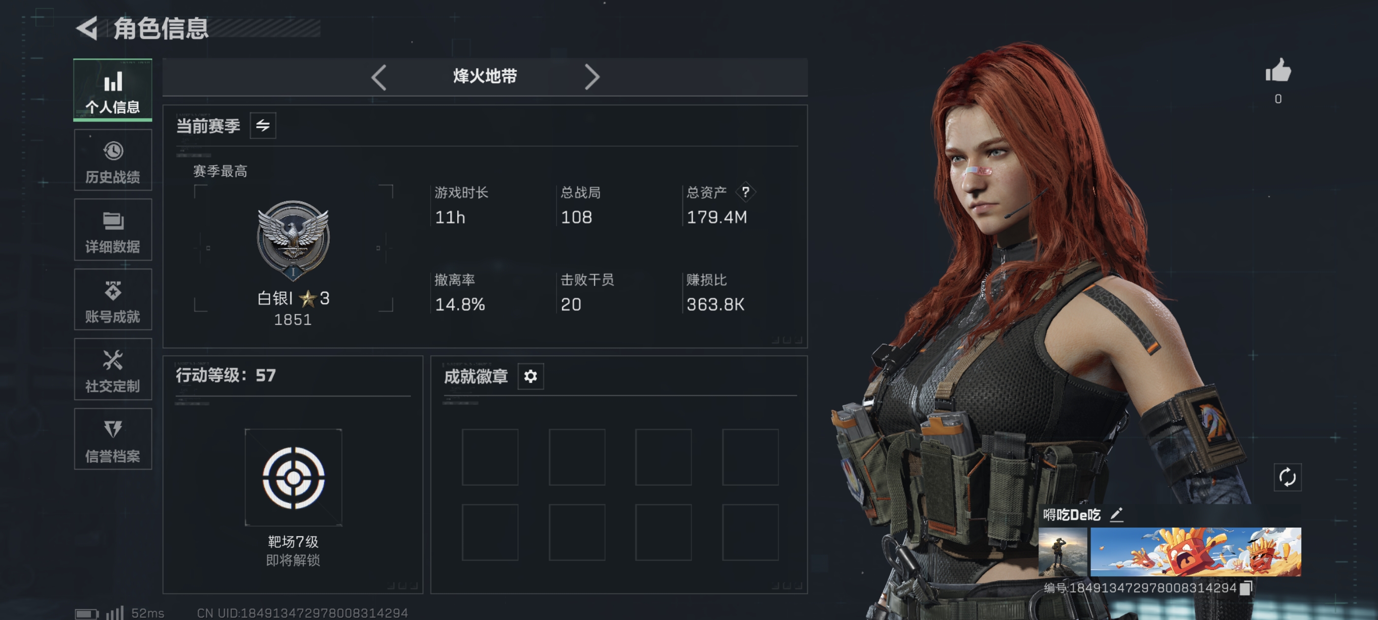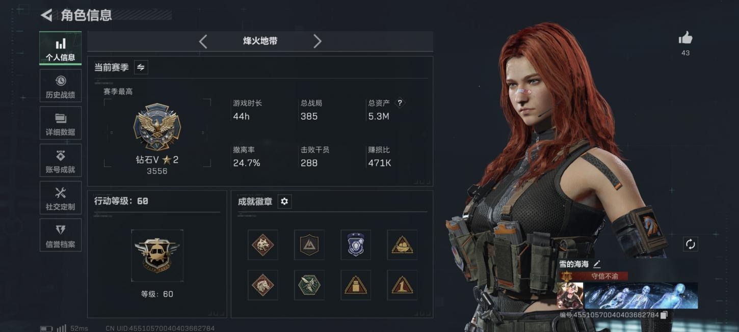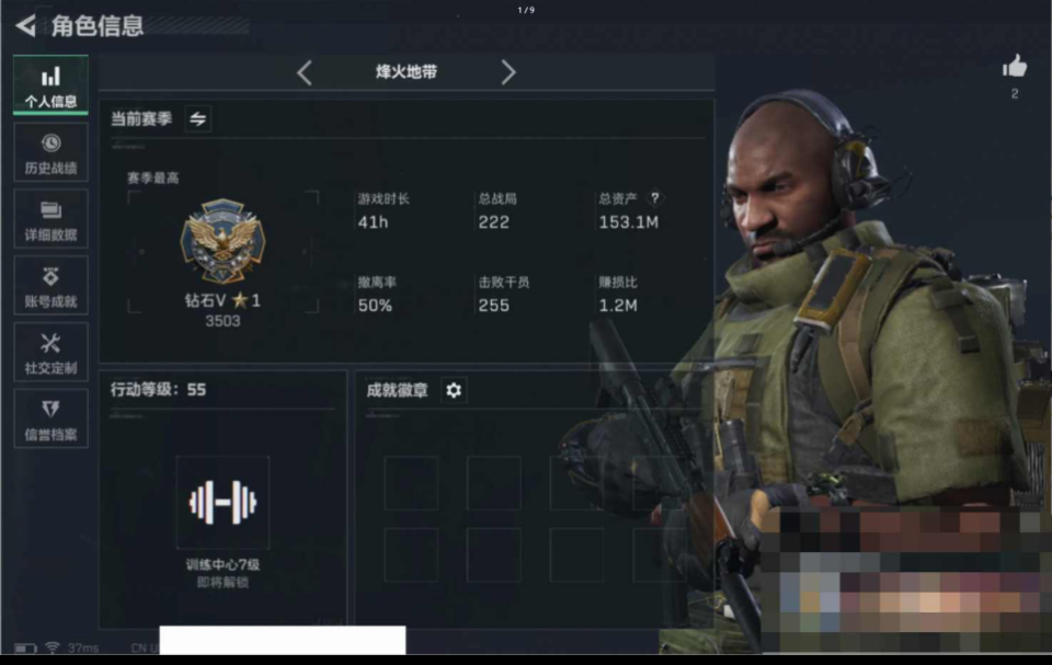 55m总资产-4489k哈伏币-60烽火等级-钻石-14战场等级-上等兵 ME