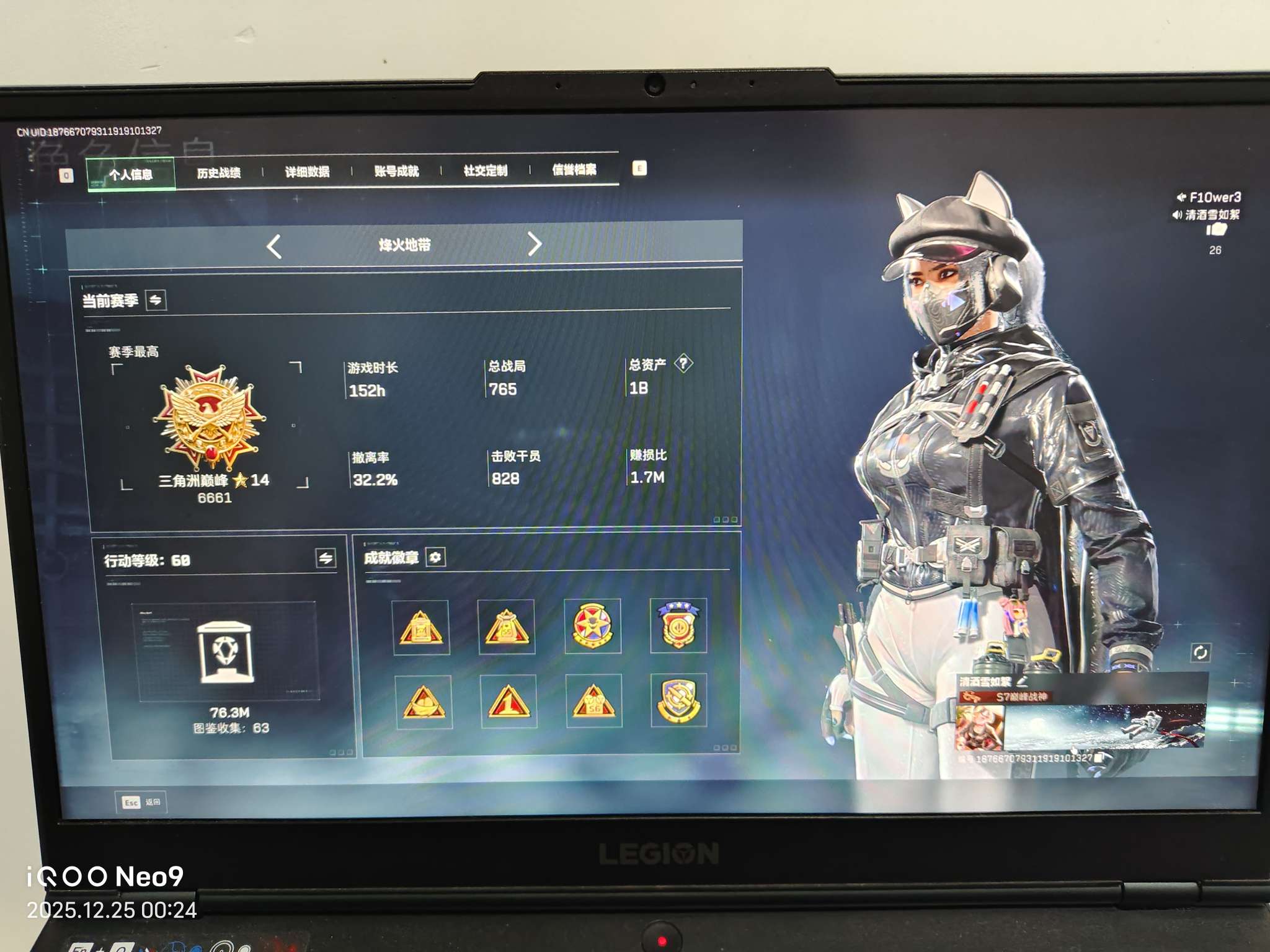 总资产(M):144M/哈夫币(K):9224K/哈夫币(K):9224K/全面战场等级:33_段位